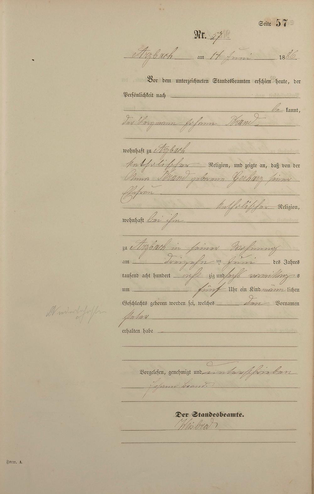 Geburtsregister 1886