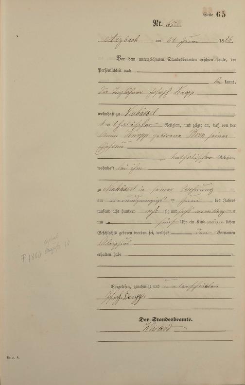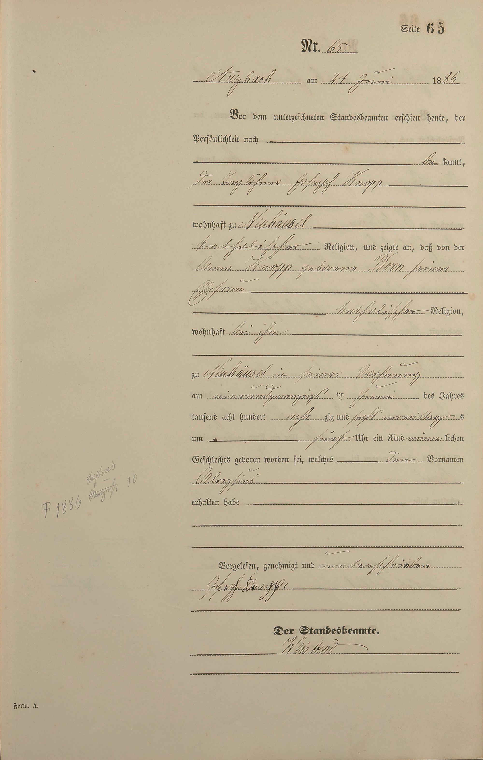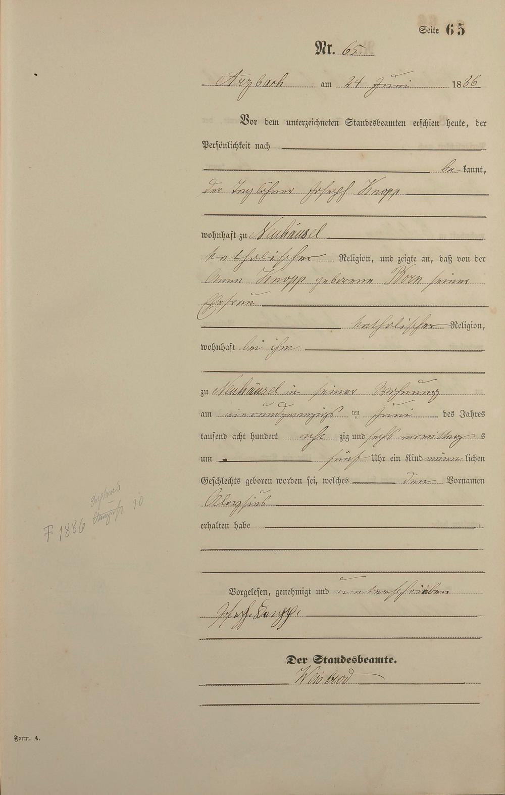 Geburtsregister 1886