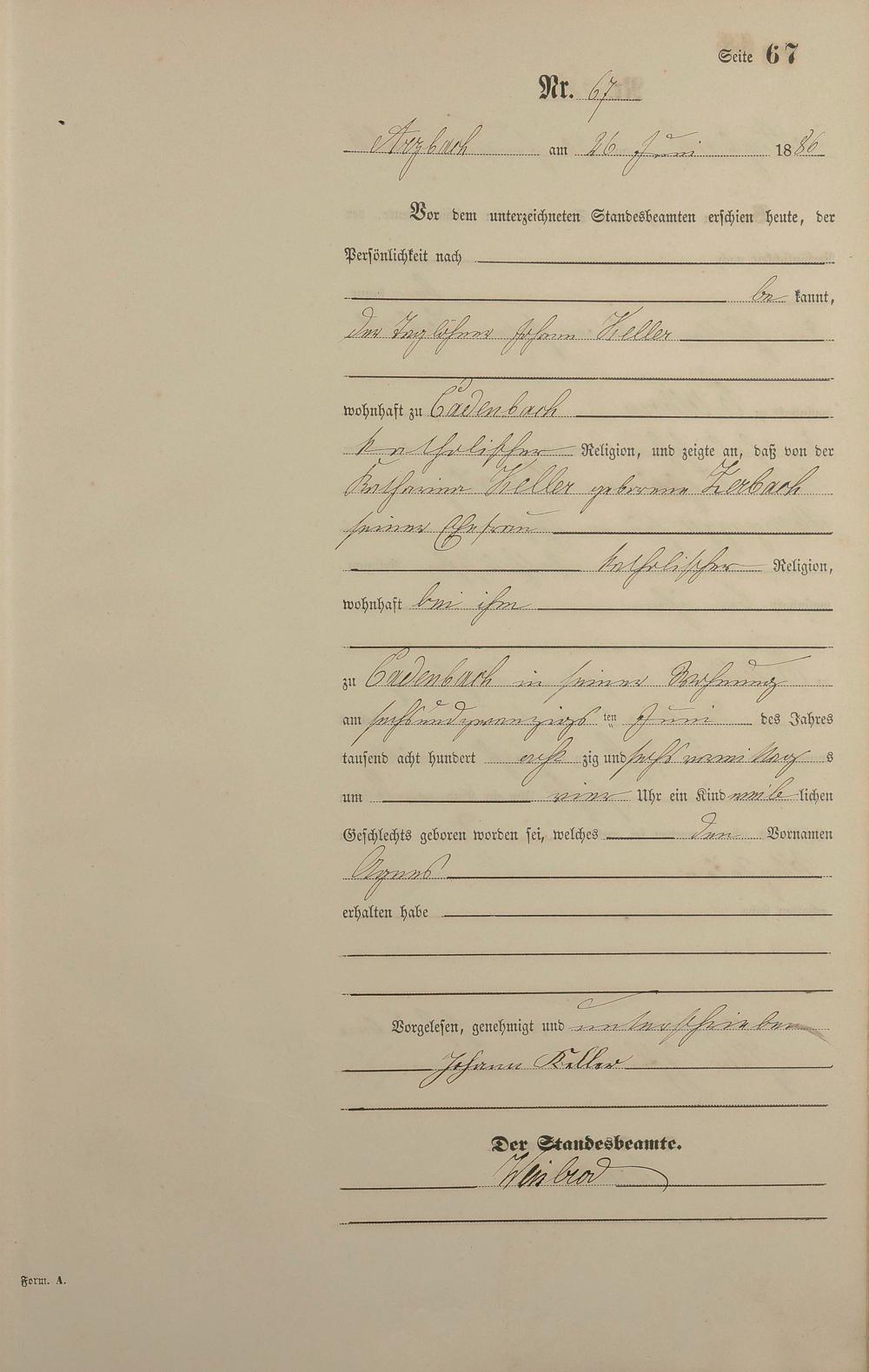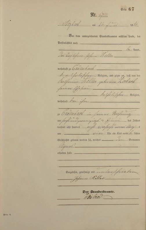 Geburtsregister 1886