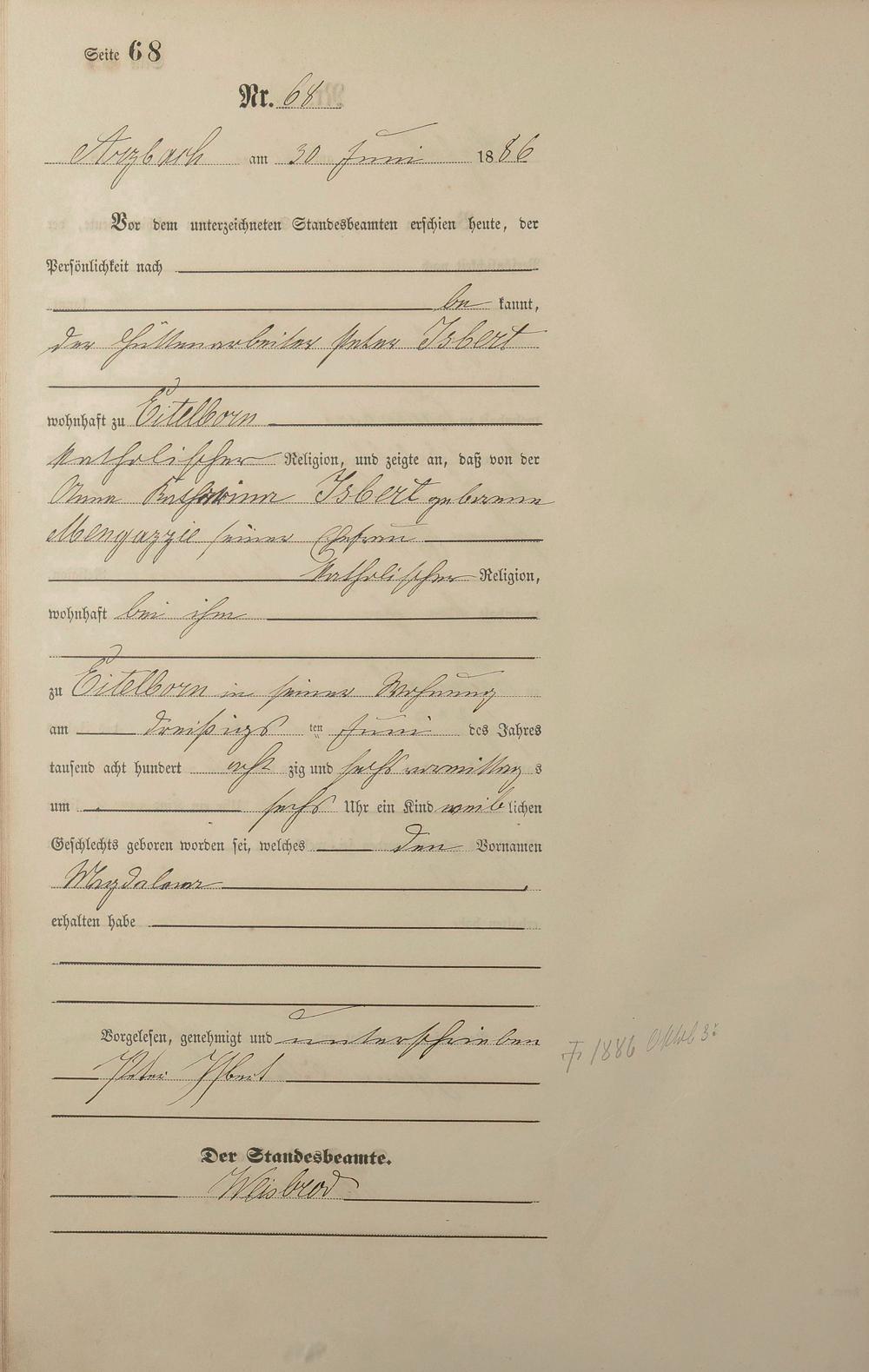 Geburtsregister 1886