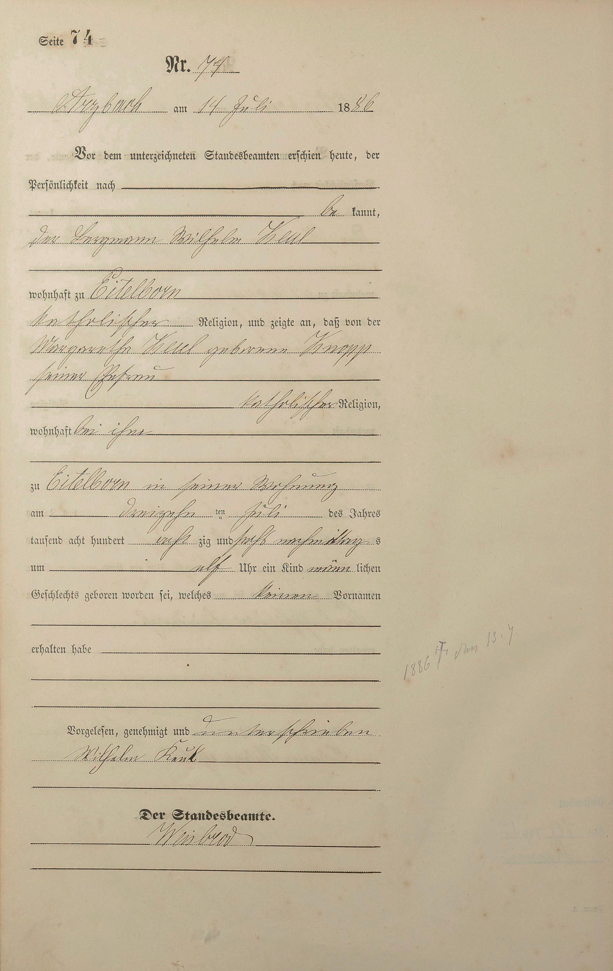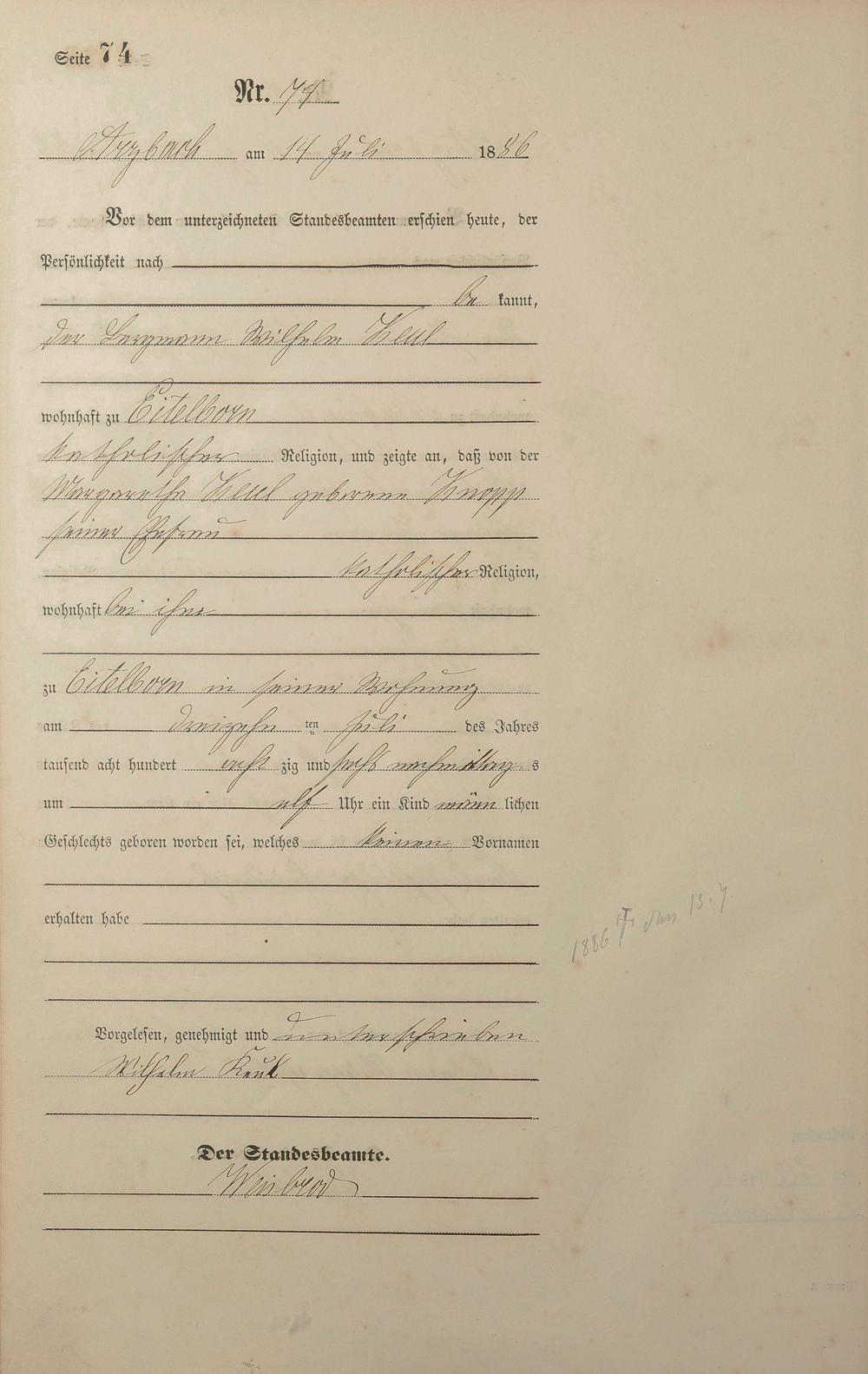 Geburtsregister 1886