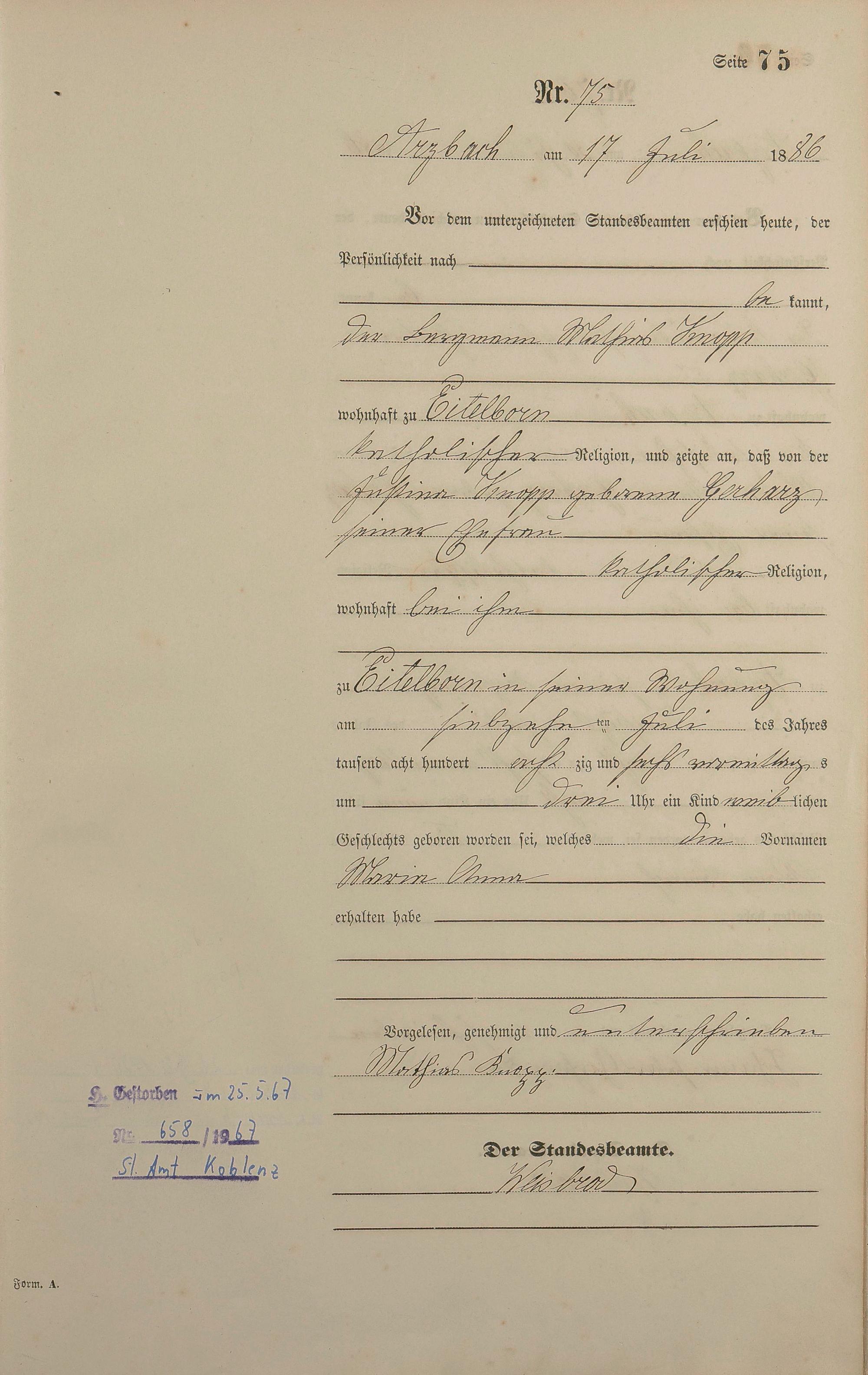 Geburtsregister 1886