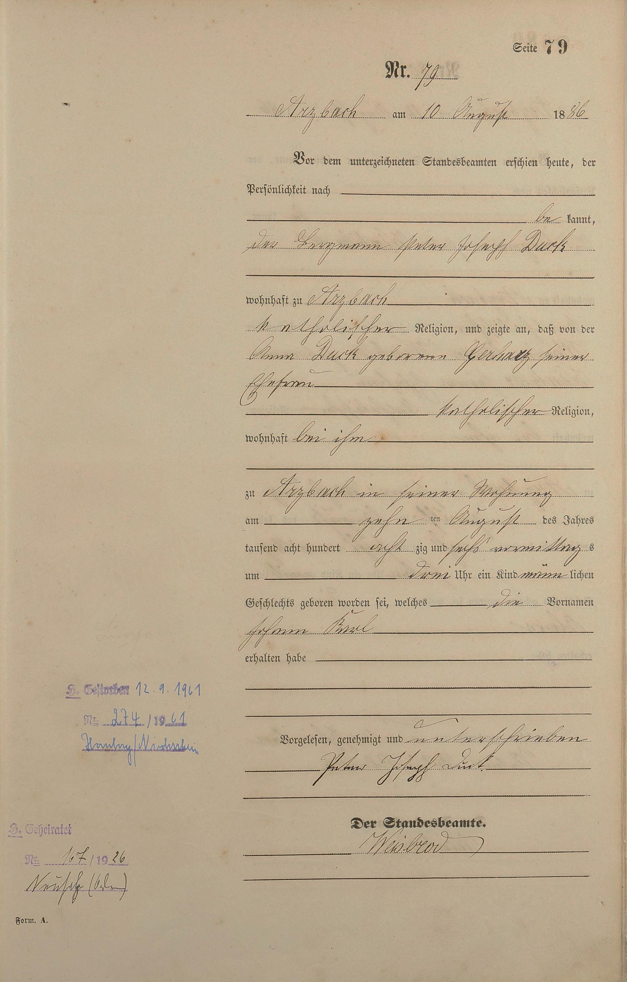 Geburtsregister 1886