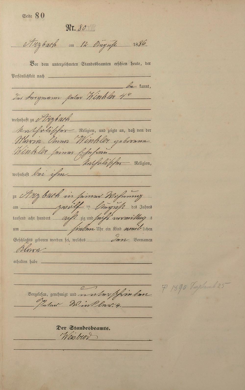 Geburtsregister 1886