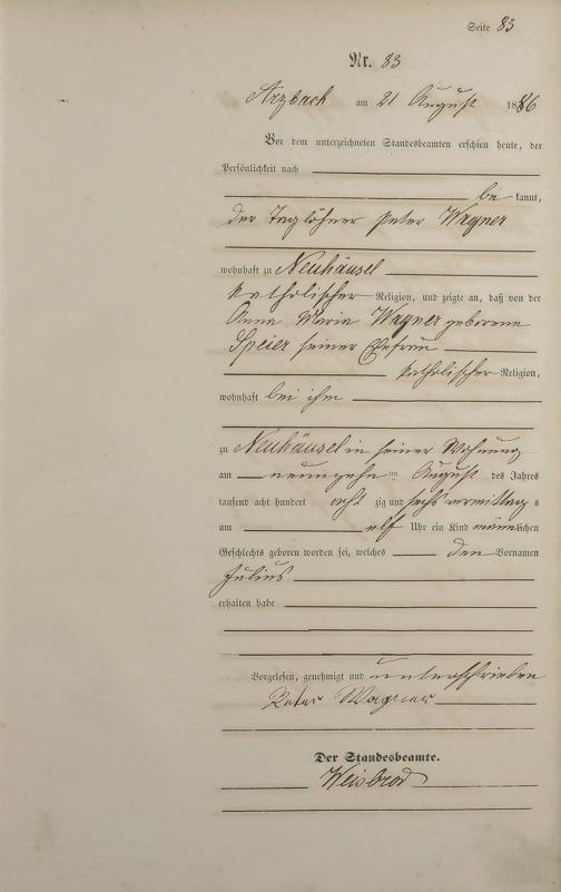 Geburtsregister 1886