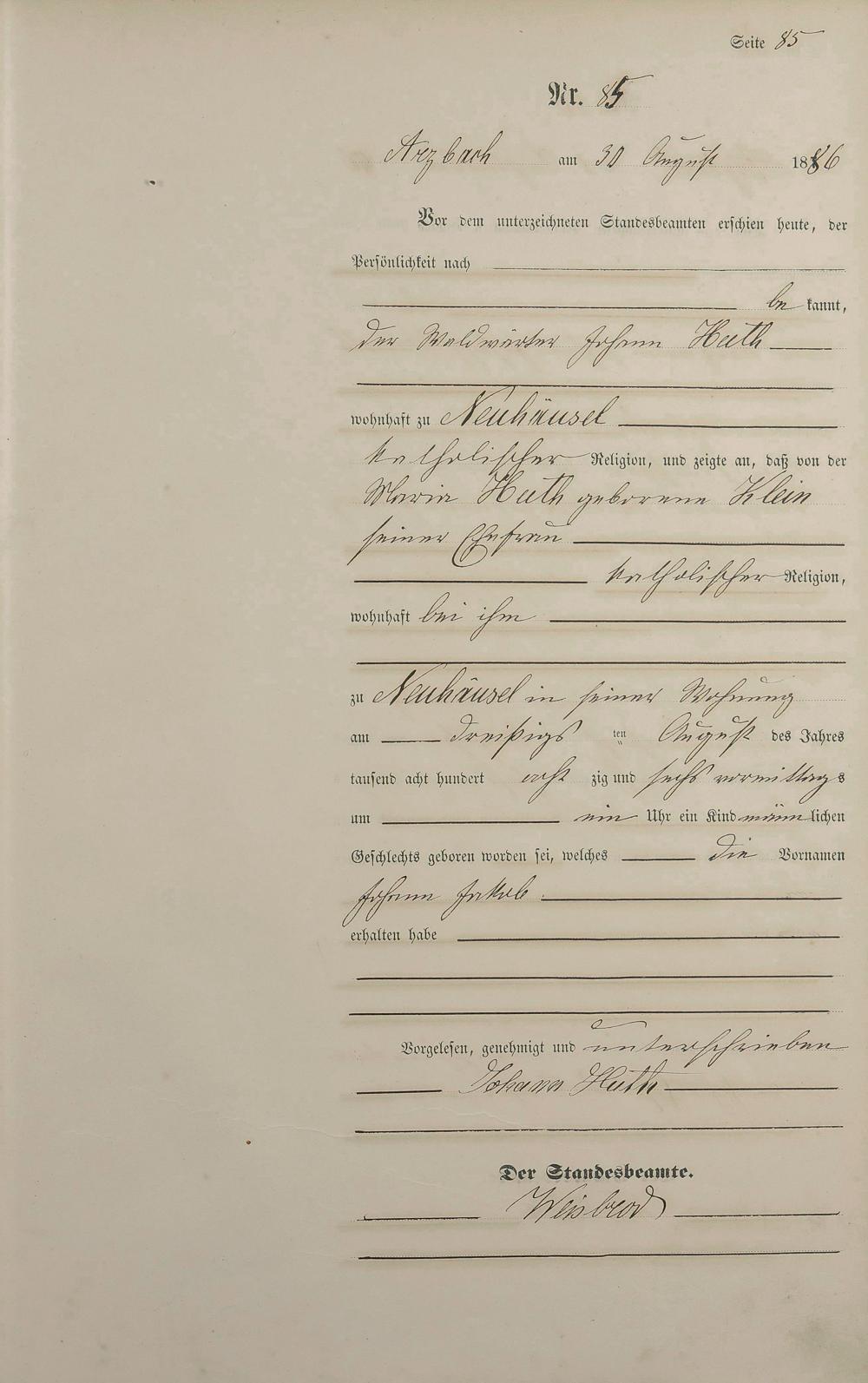 Geburtsregister 1886