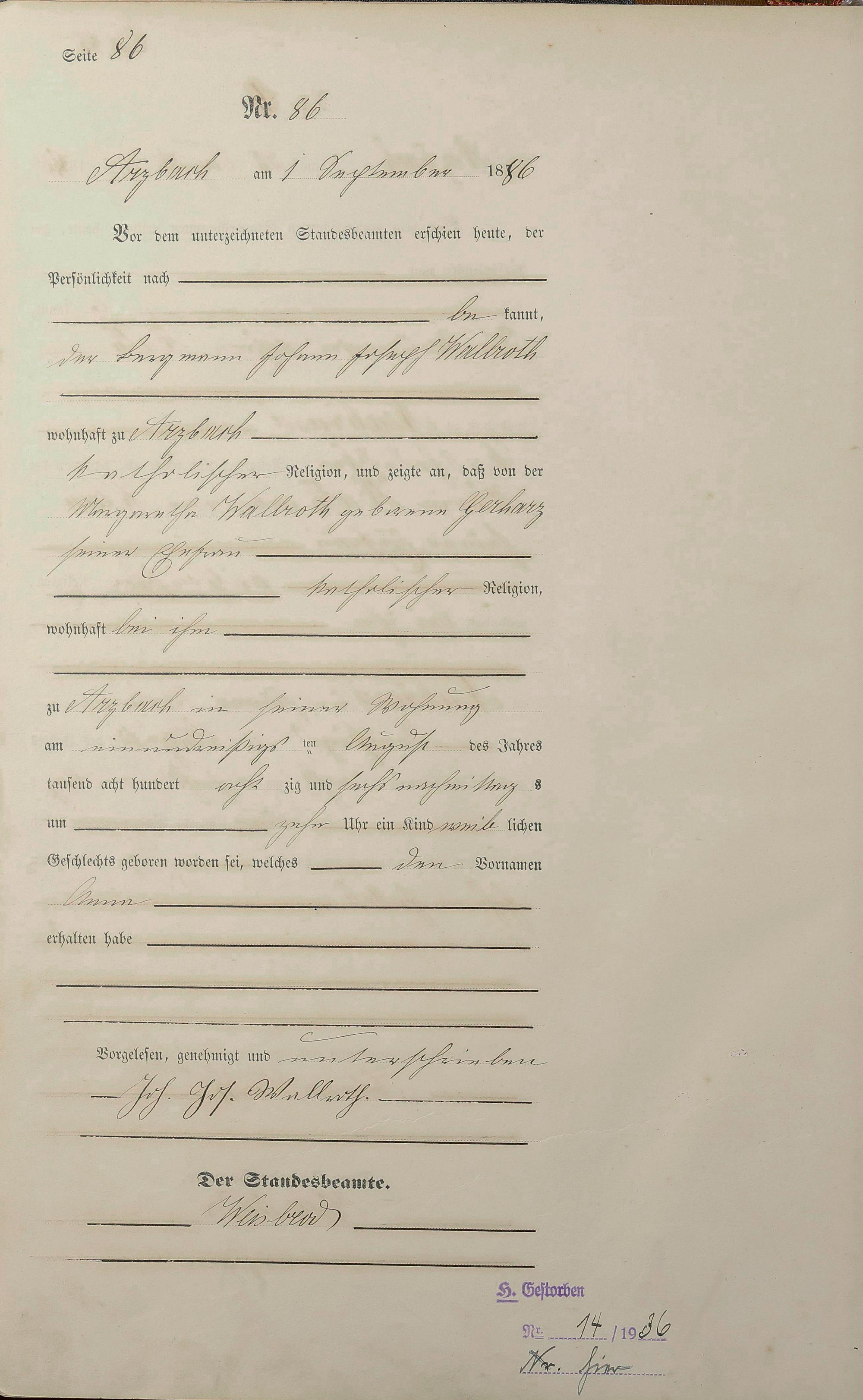 Geburtsregister 1886