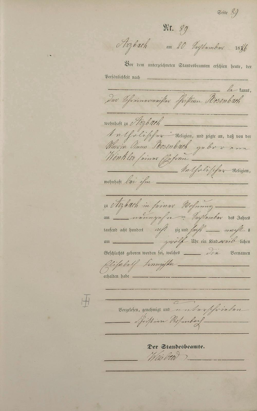 Geburtsregister 1886