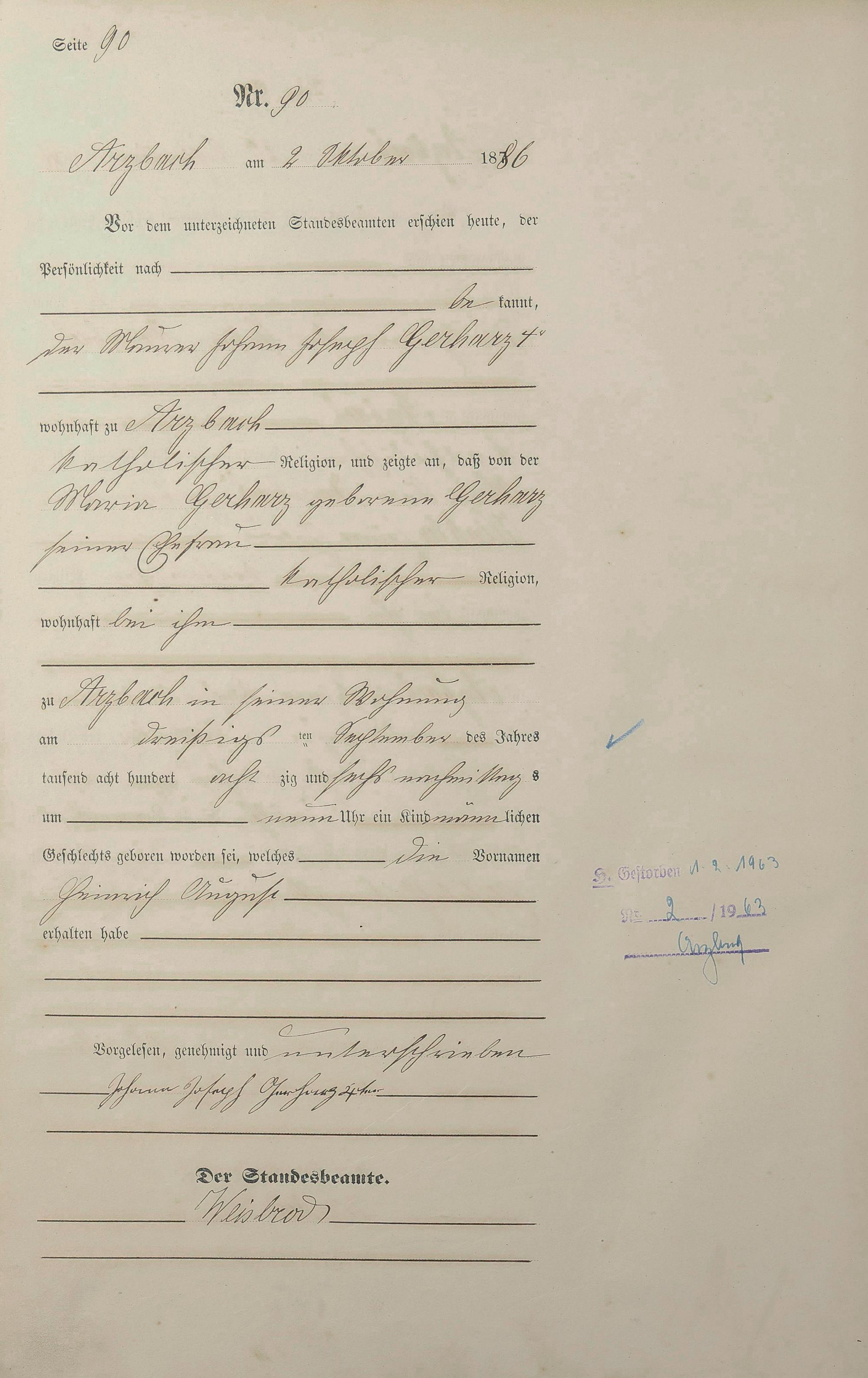 Geburtsregister 1886