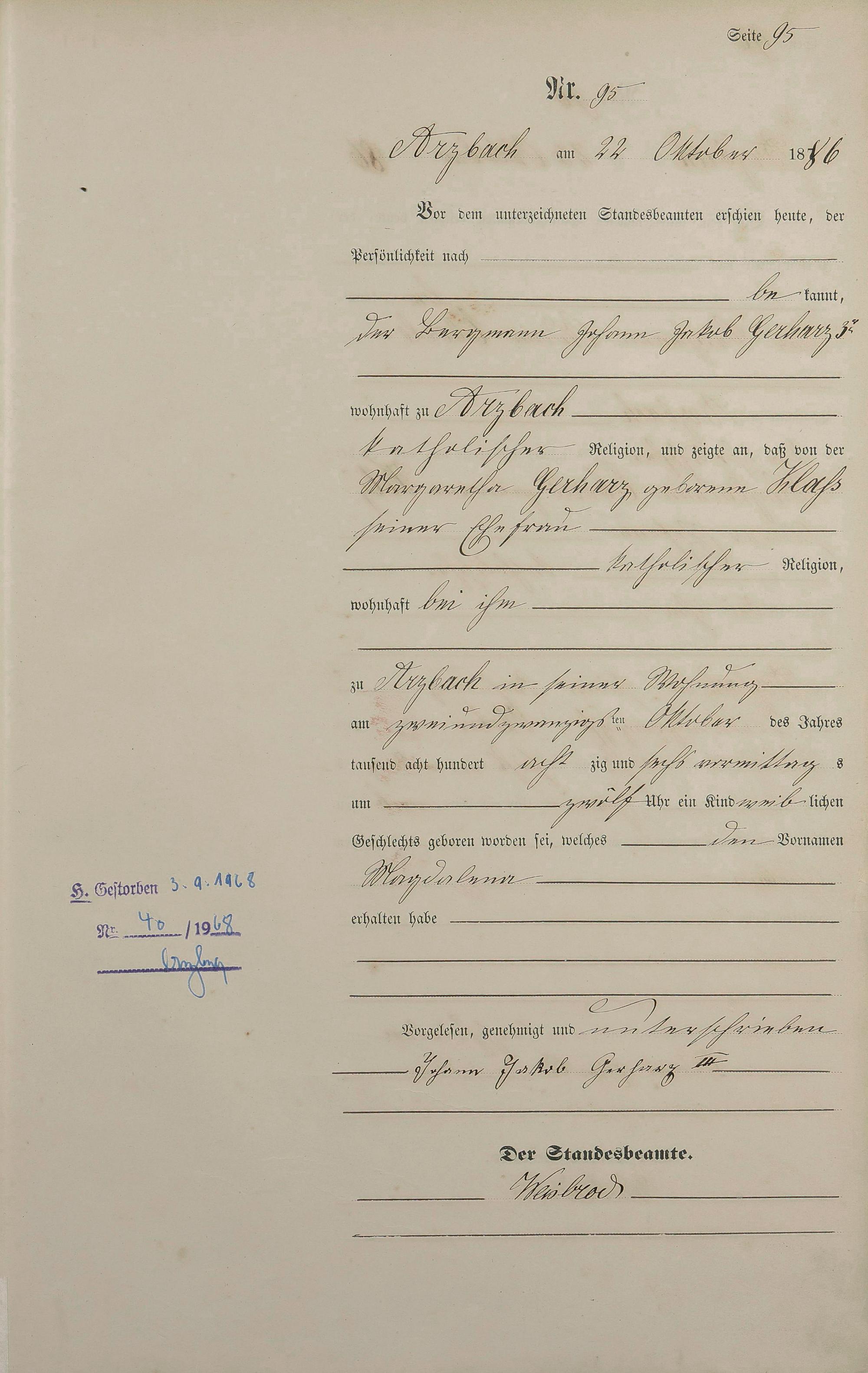 Geburtsregister 1886