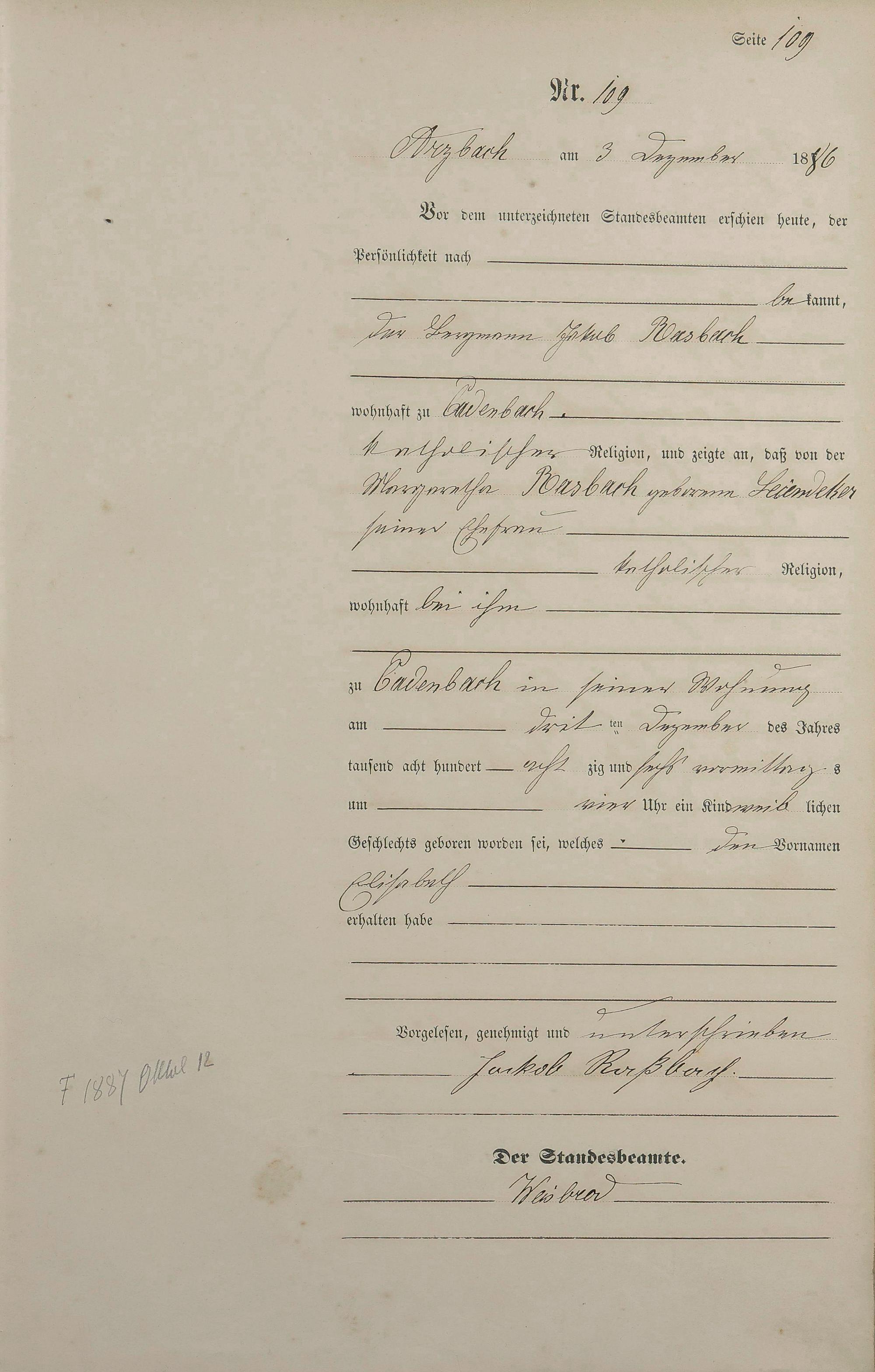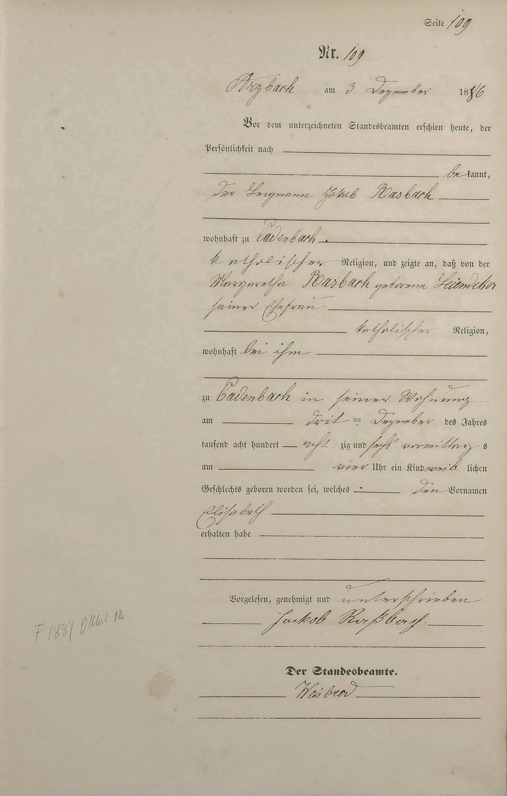 Geburtsregister 1886