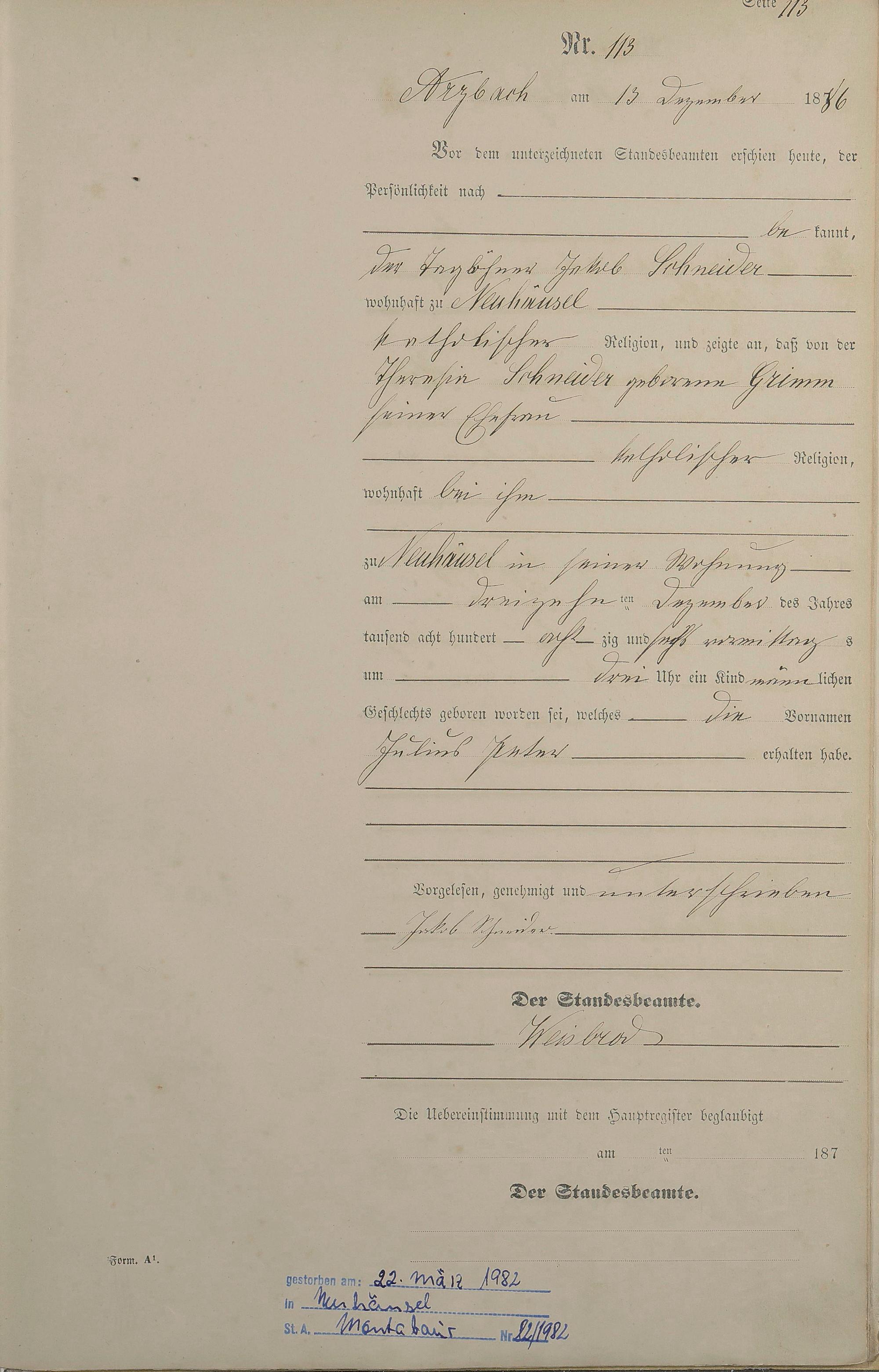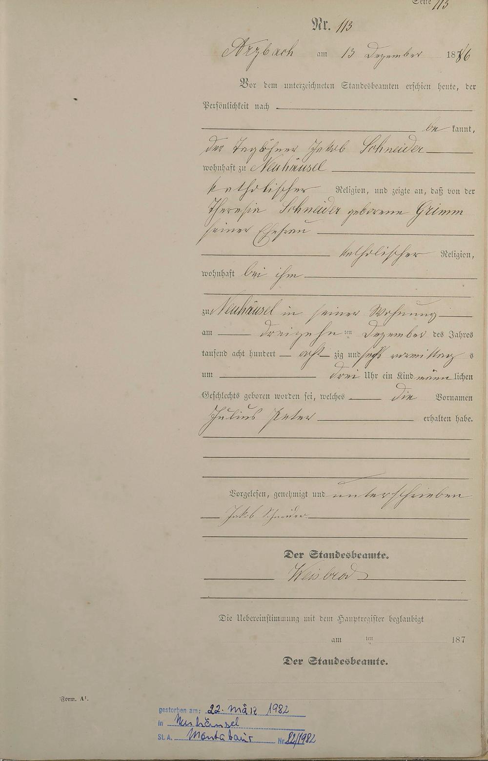 Geburtsregister 1886