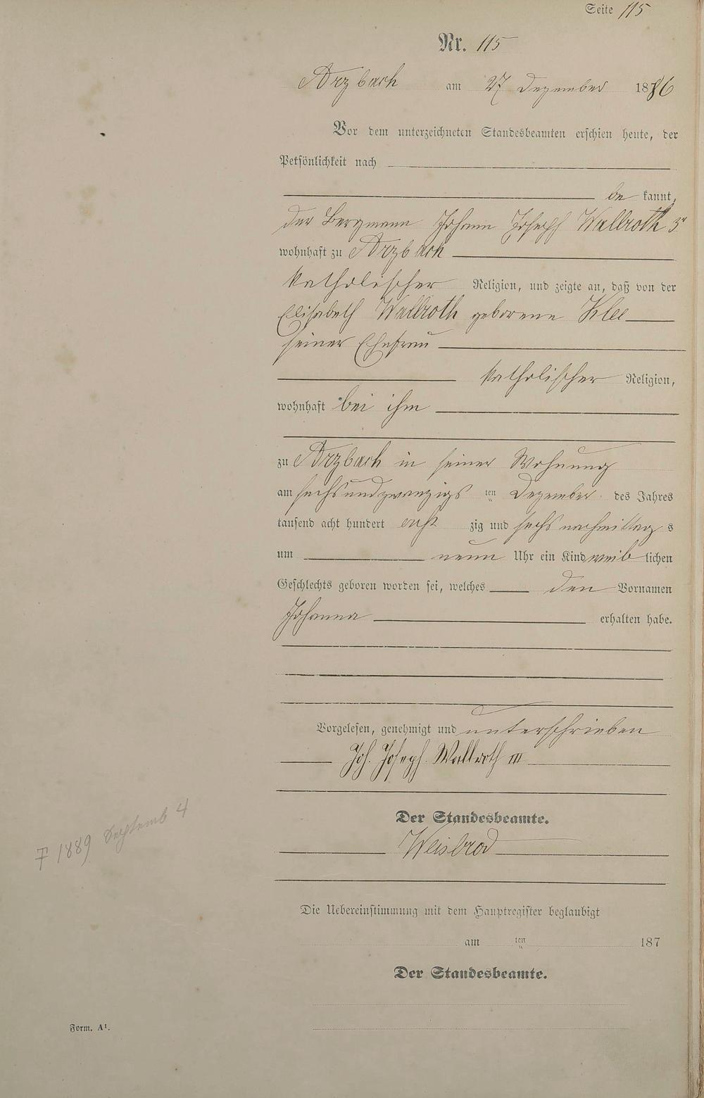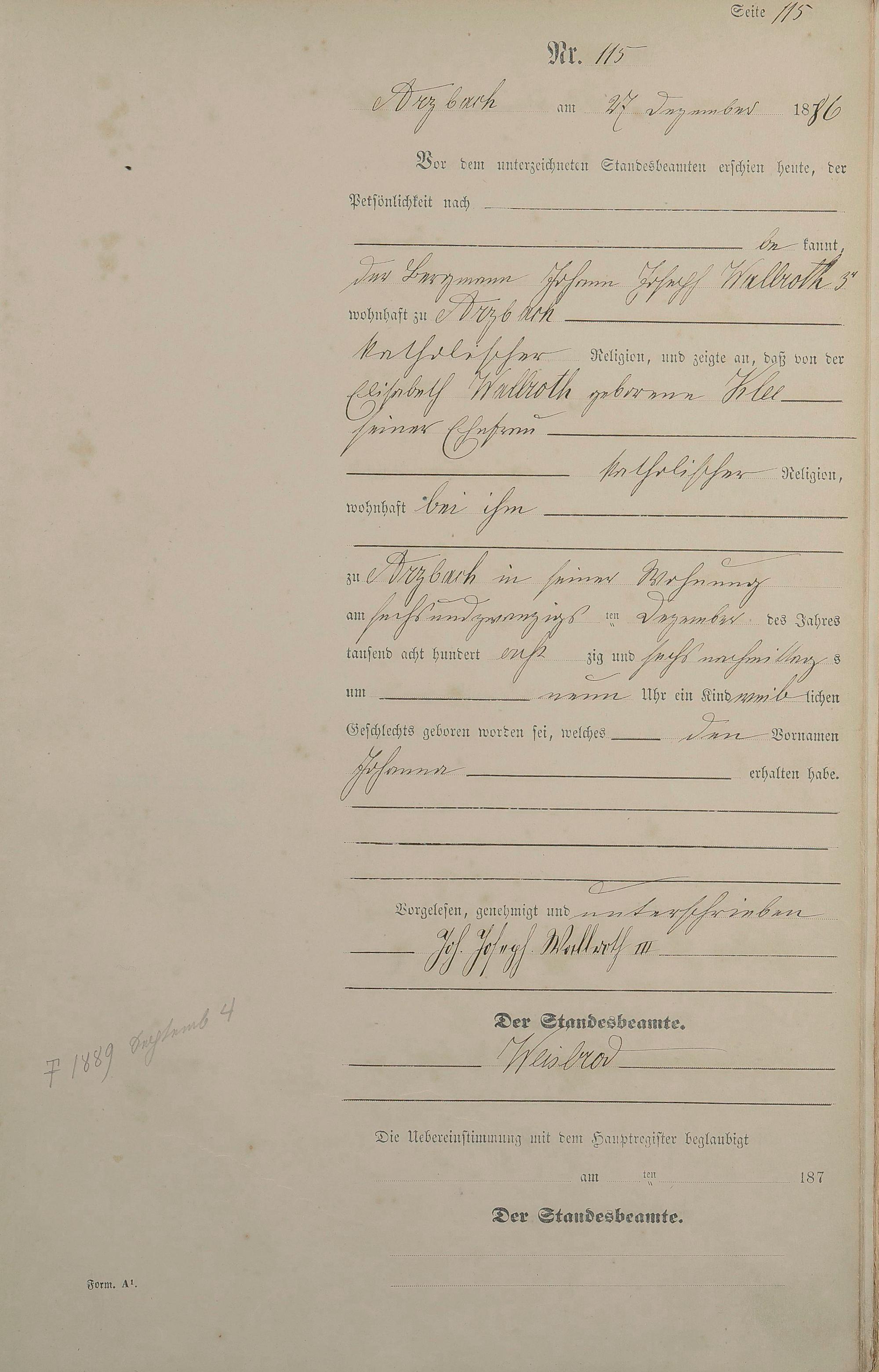 Geburtsregister 1886