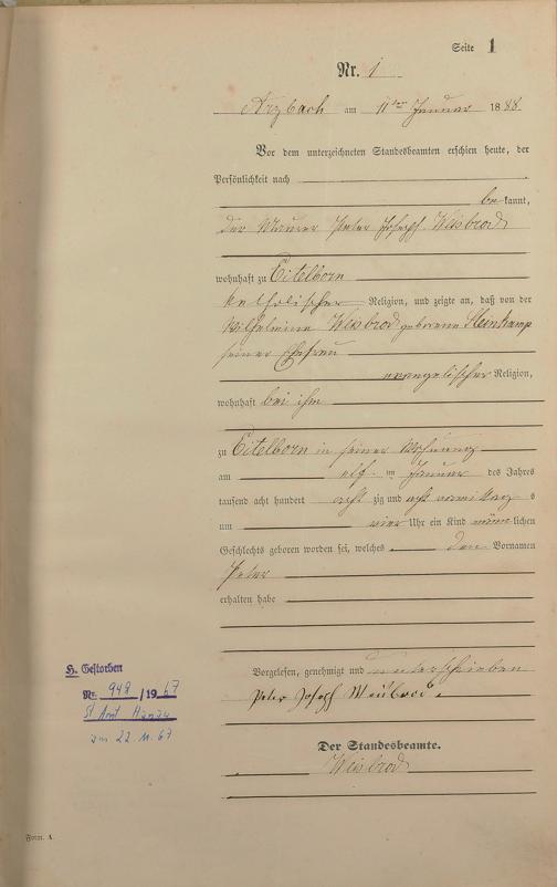 Geburtsregister 1888