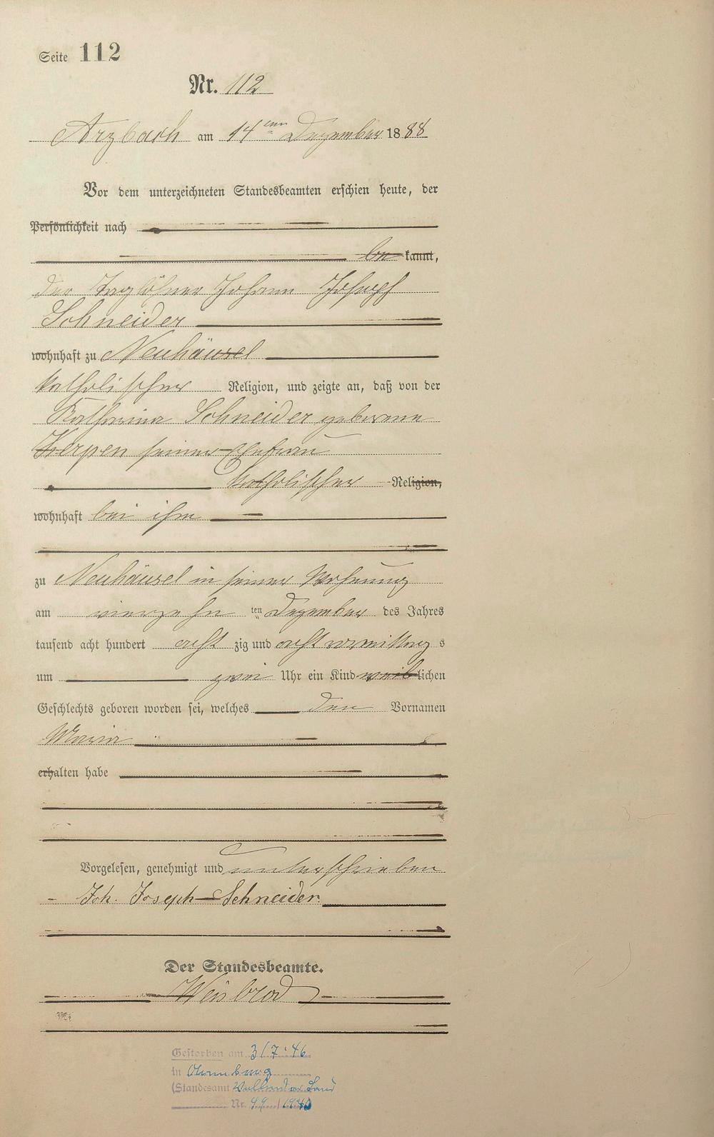 Geburtsregister 1888