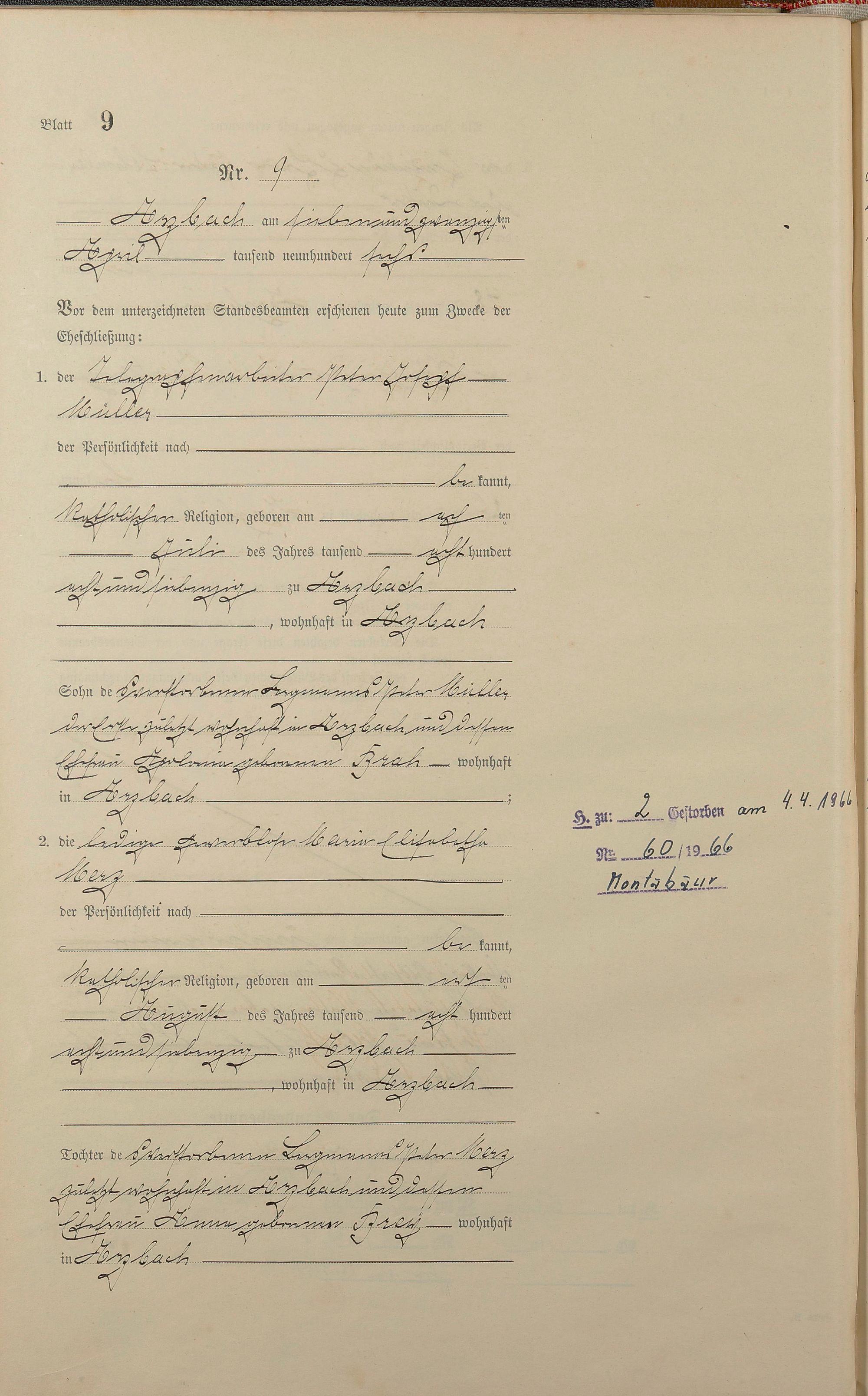 Heiratsregister 1906