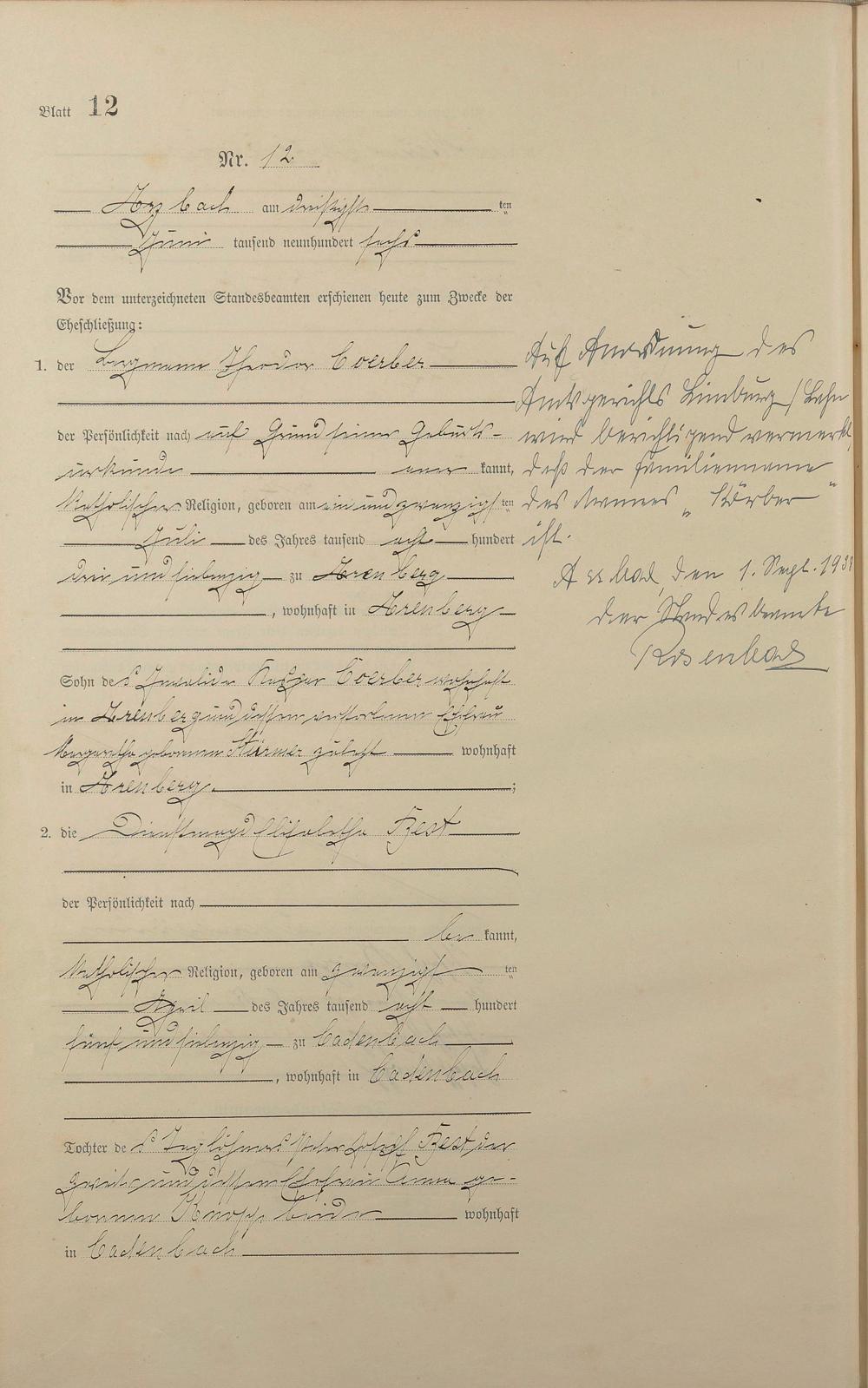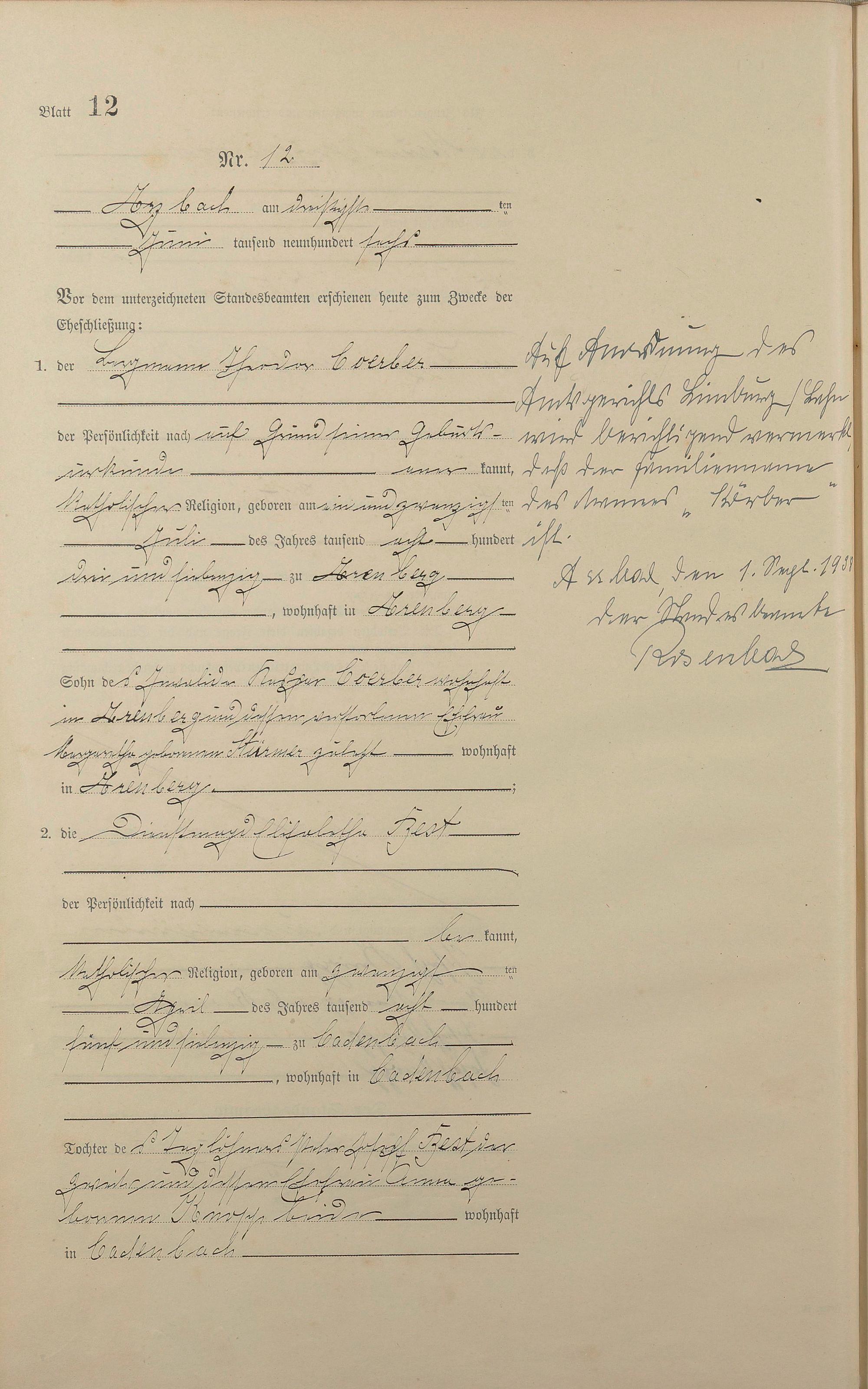 Heiratsregister 1906