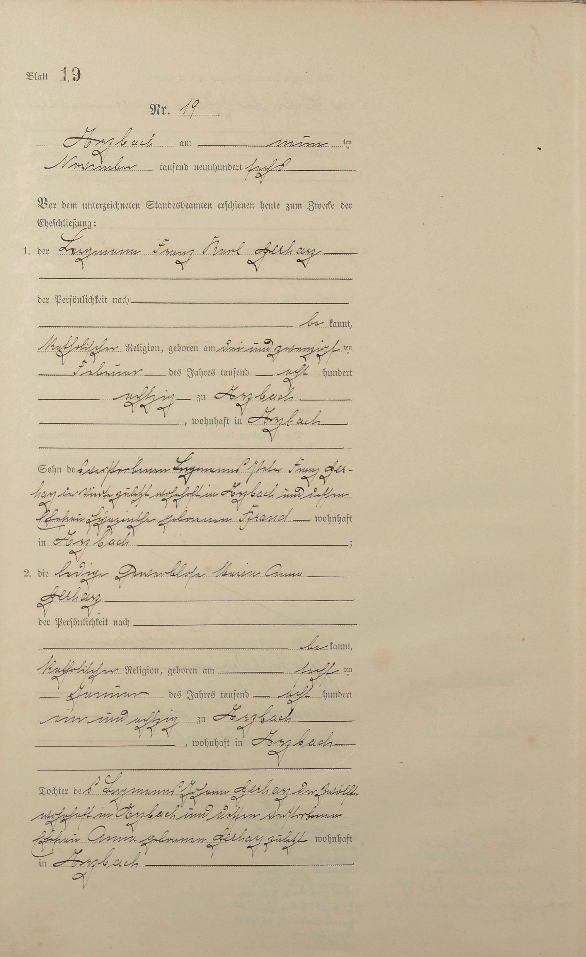 Heiratsregister 1906