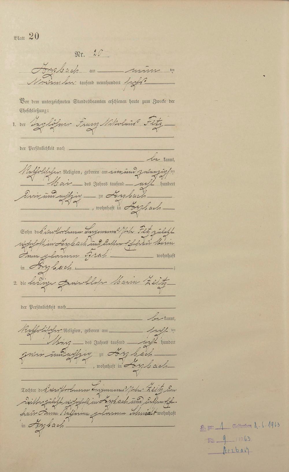 Heiratsregister 1906