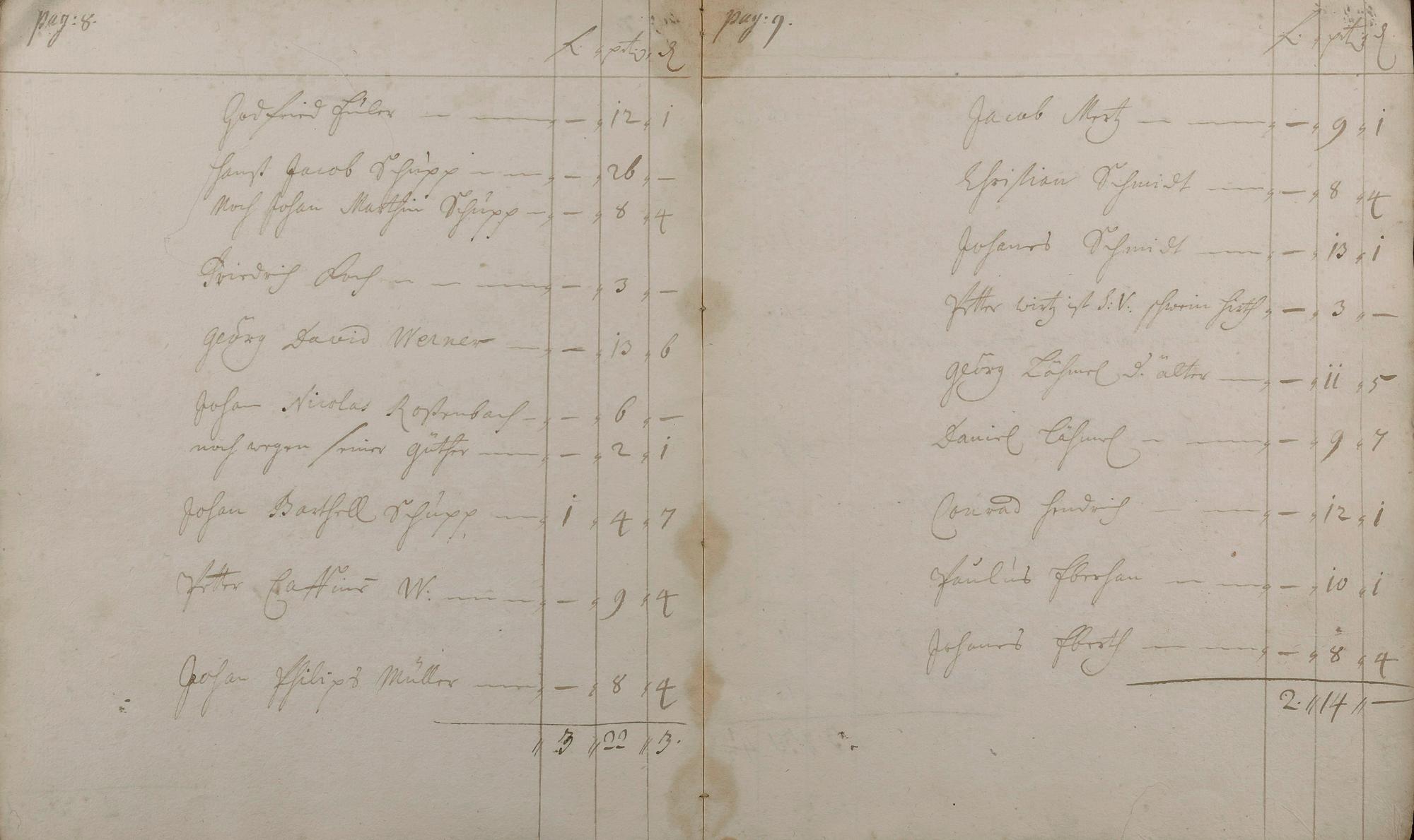 Kontributionsregister angefertigt von Bürgermeister David Werner jun. und Geselle Adam Dummermuth