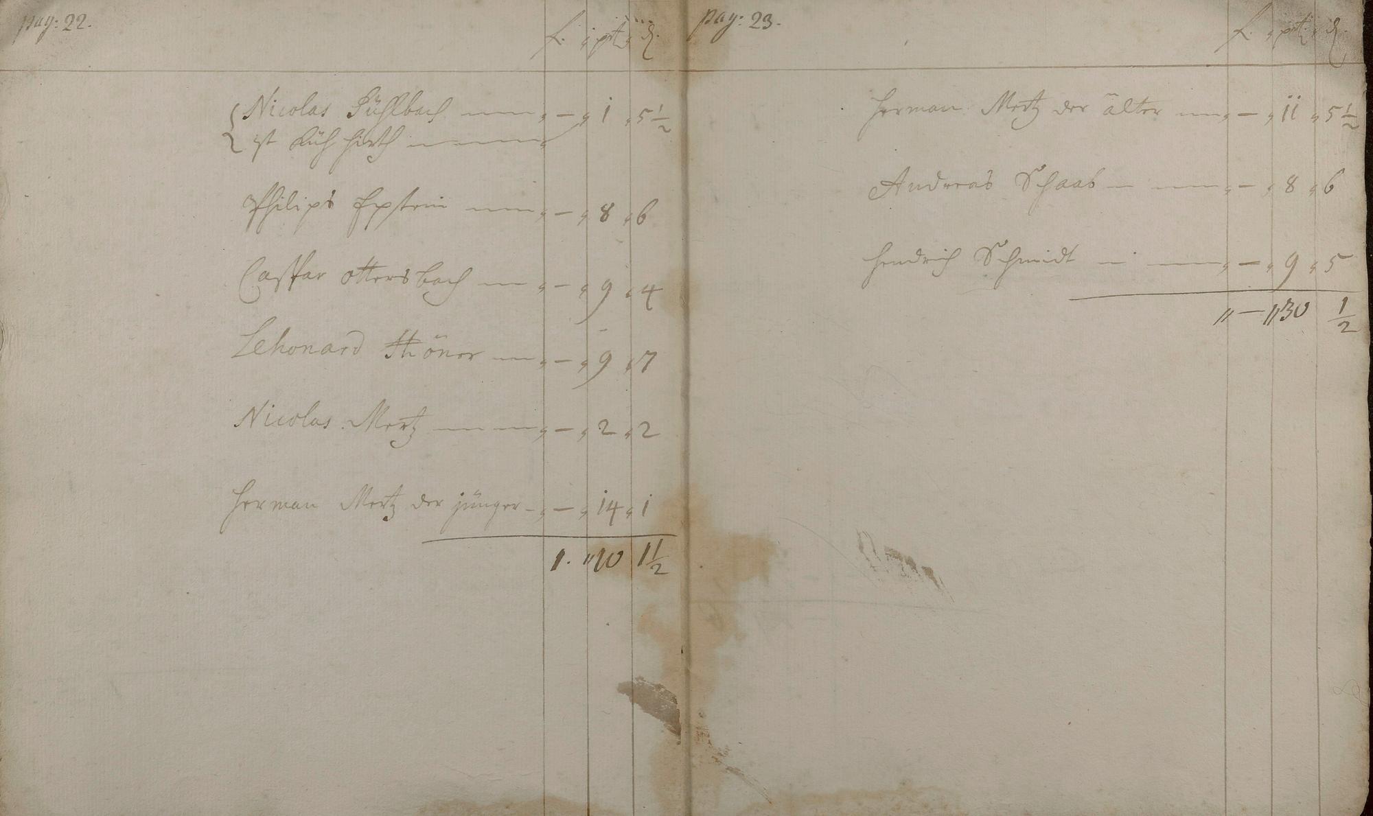Kontributionsregister angefertigt von Bürgermeister David Werner jun. und Geselle Adam Dummermuth