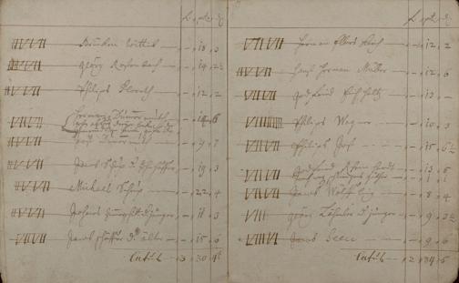 Kontributionsregister angefertigt von Bürgermeister David Werner jun. und Geselle Adam Dummermuth
