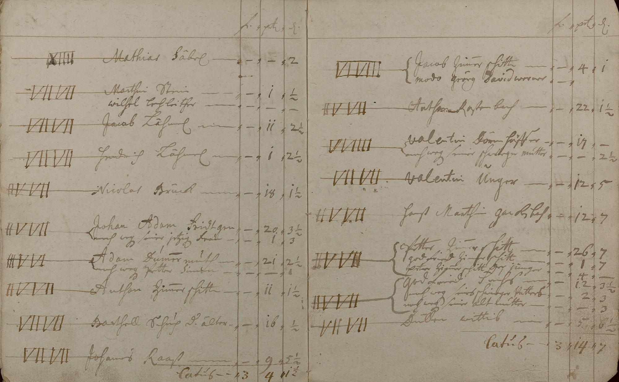 Kontributionsregister angefertigt von Bürgermeister David Werner jun. und Geselle Adam Dummermuth