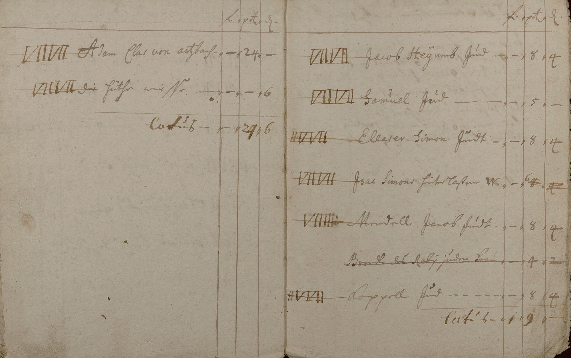 Kontributionsregister angefertigt von Bürgermeister David Werner jun. und Geselle Adam Dummermuth