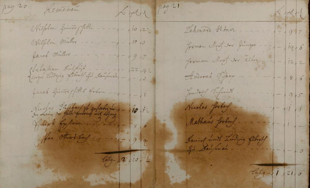 Kontributionsregister angefertigt von Bürgermeister Heinrich Rosenbach und Geselle Heinrich Peter Kaffine