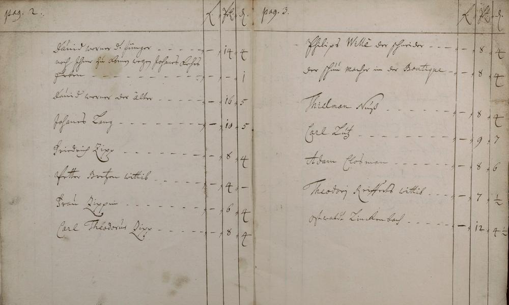 Kontributionsregister angefertigt von Bürgermeister Johann Georg Rosenbach und Geselle Conrad Heinrich