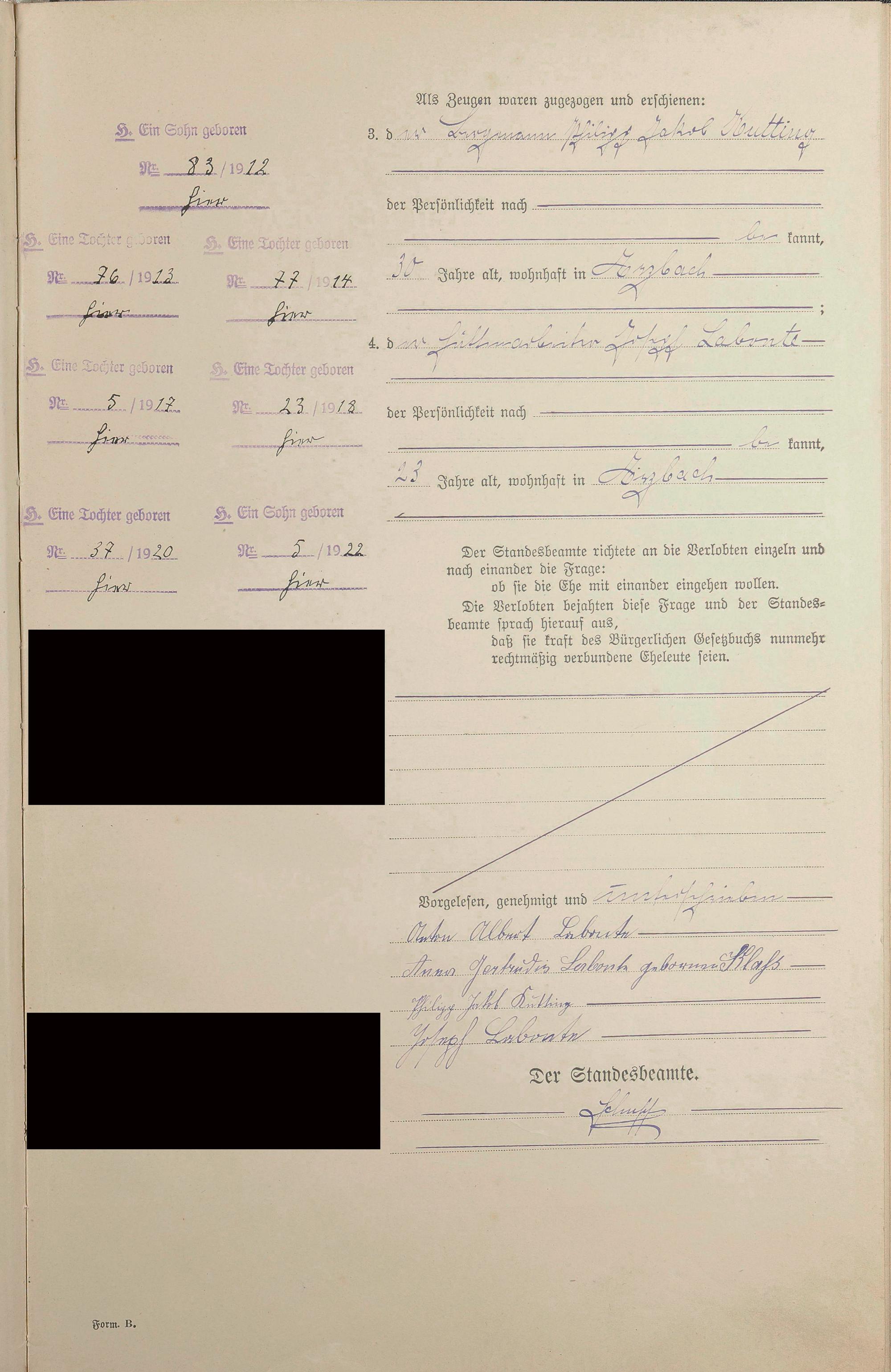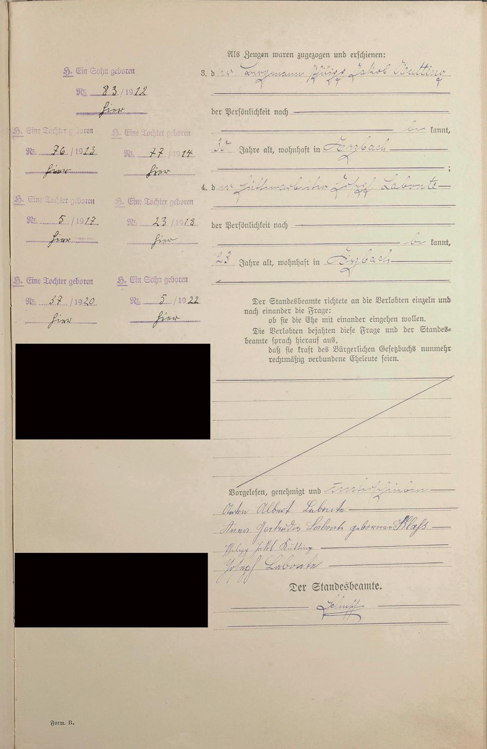 Heiratsregister 1912