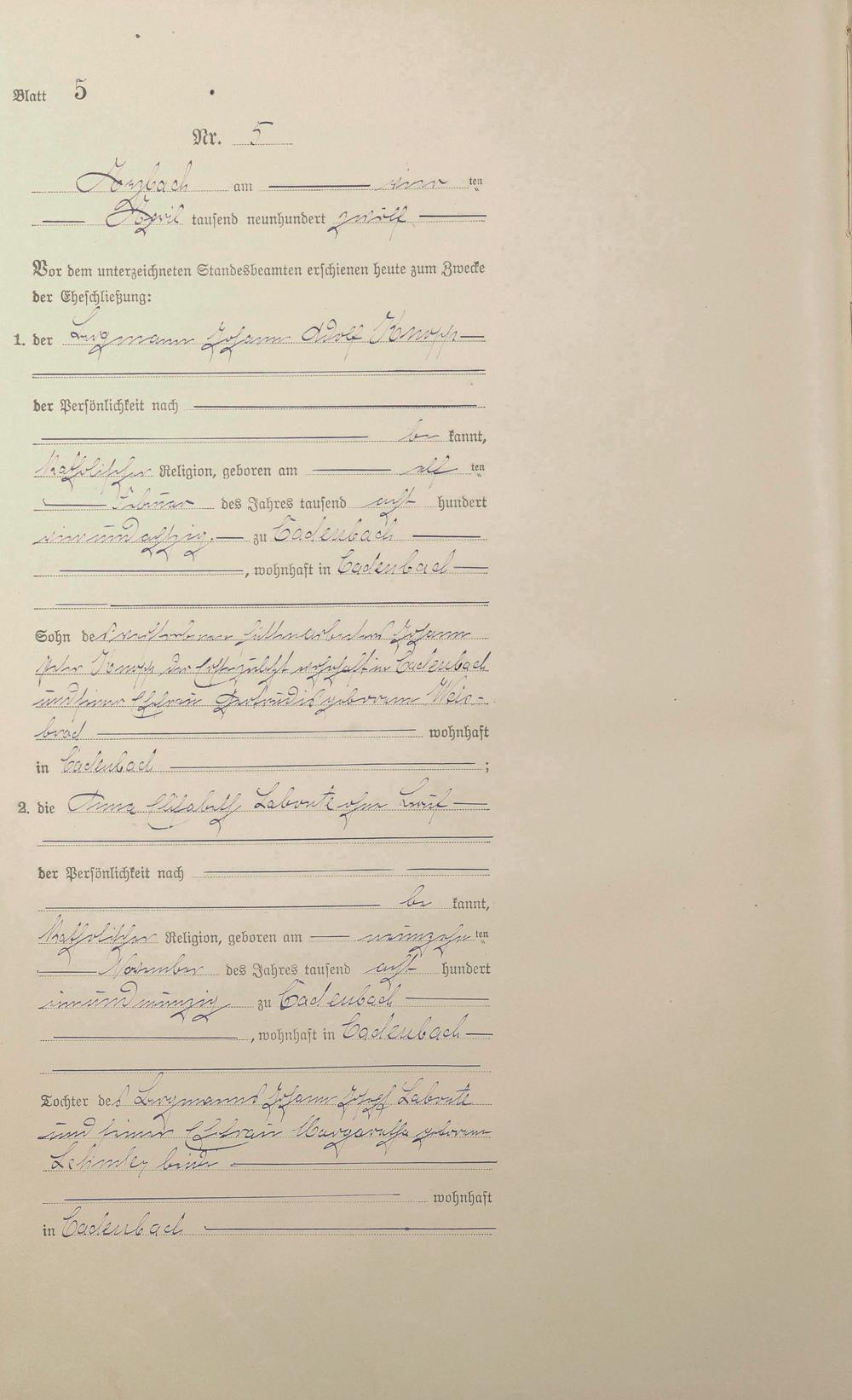 Heiratsregister 1912