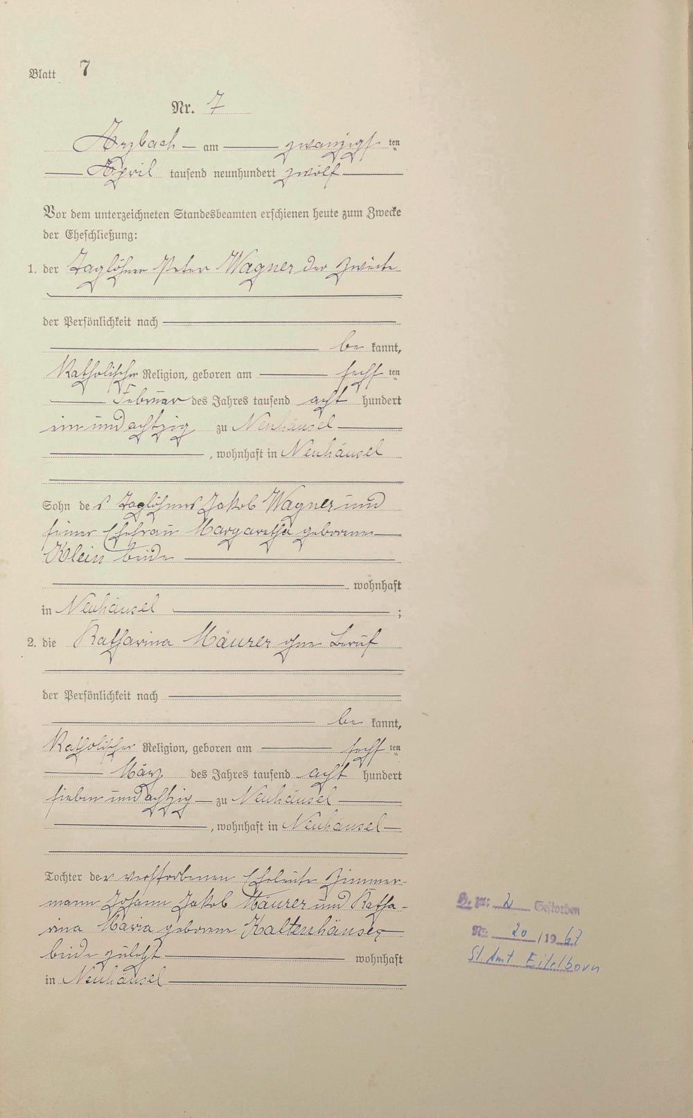 Heiratsregister 1912