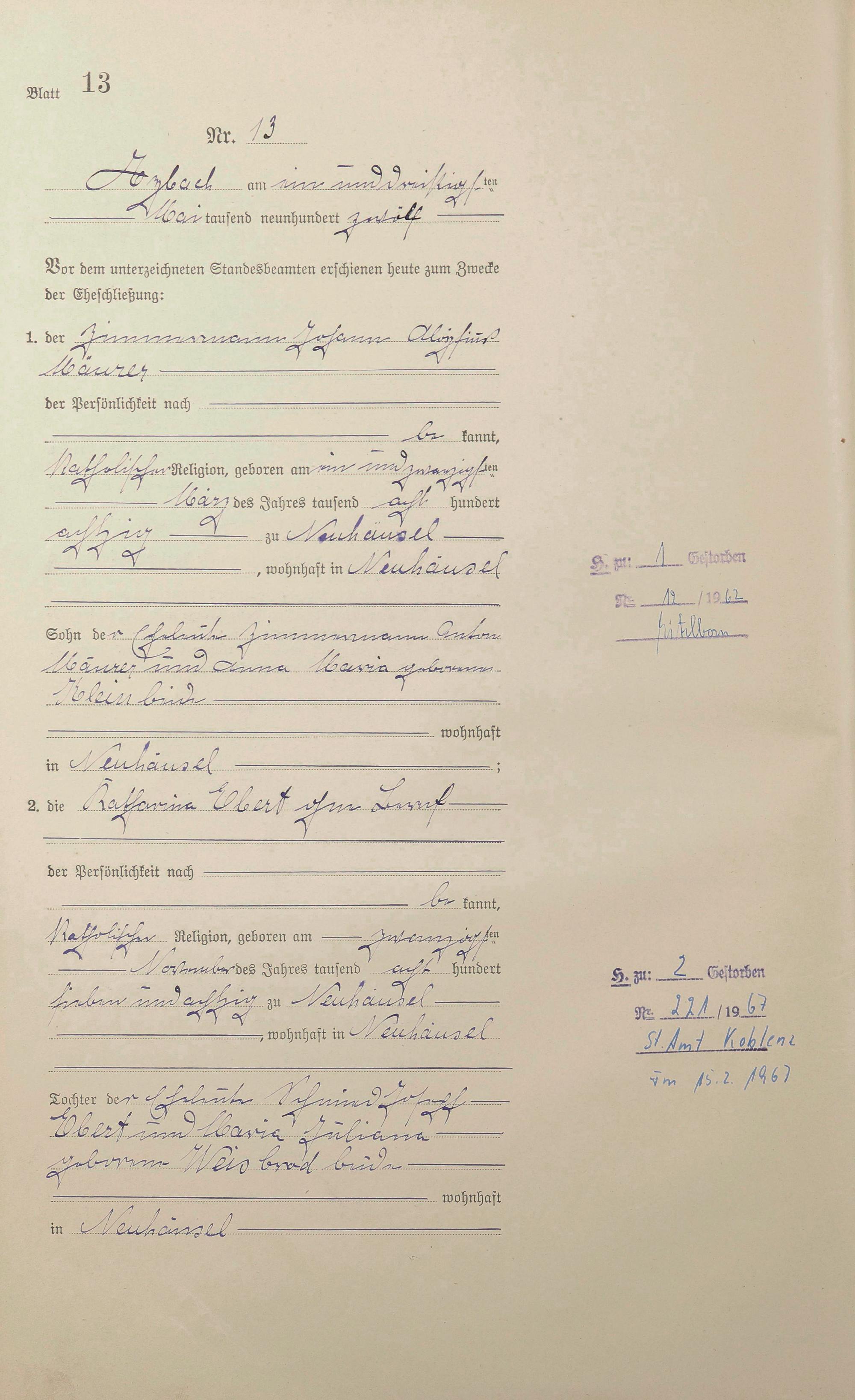 Heiratsregister 1912