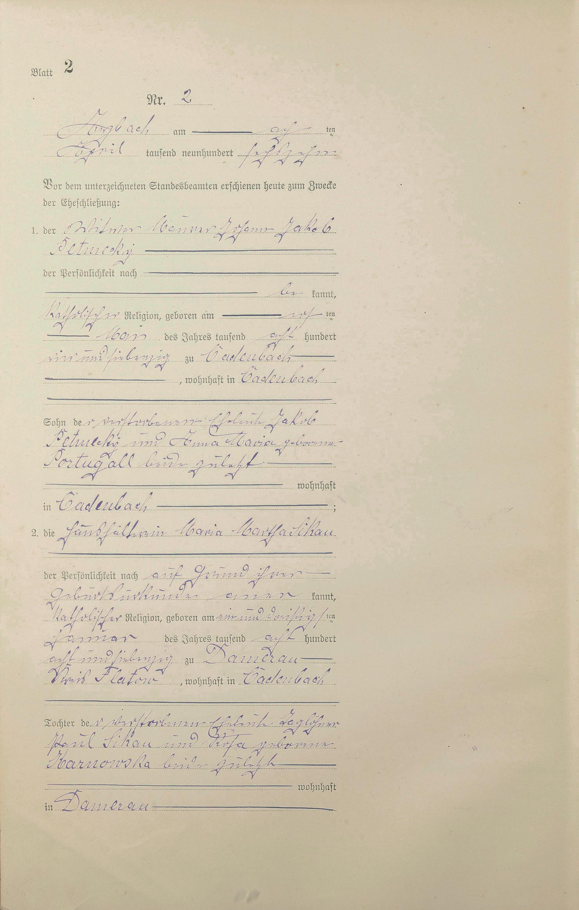 Heiratsregister 1916