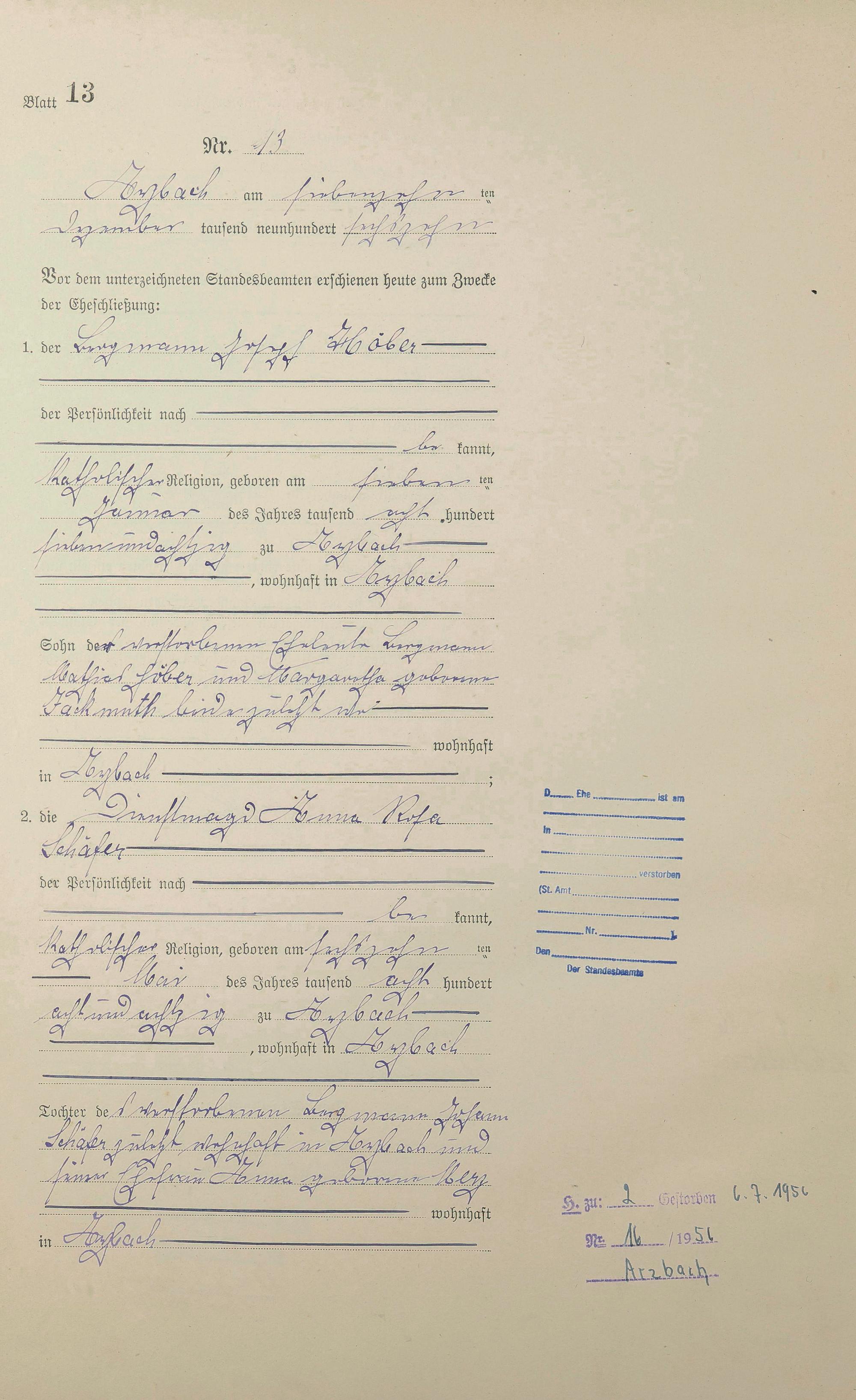 Heiratsregister 1916