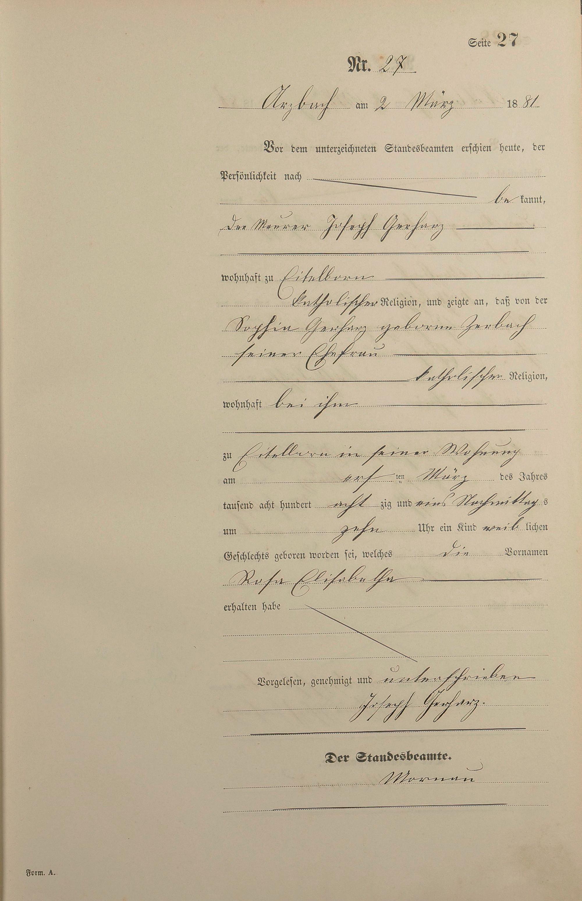 Geburtsregister 1881