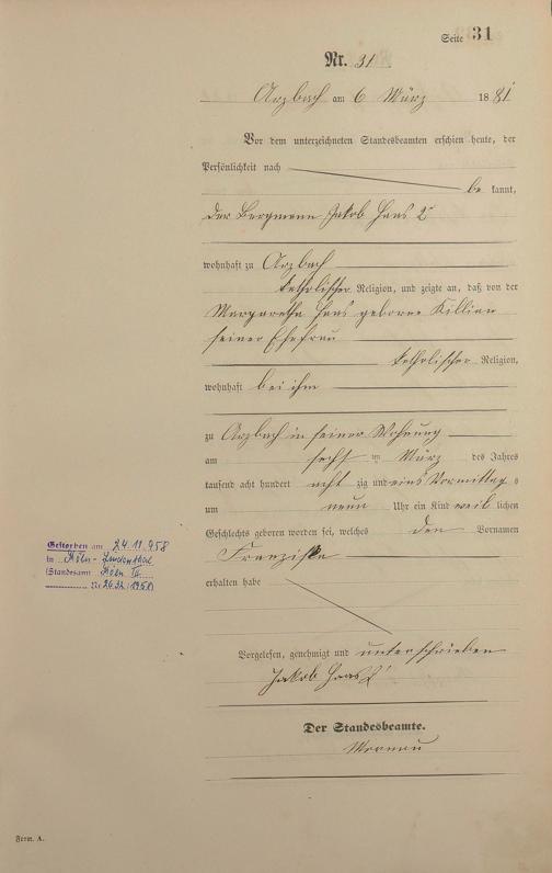 Geburtsregister 1881