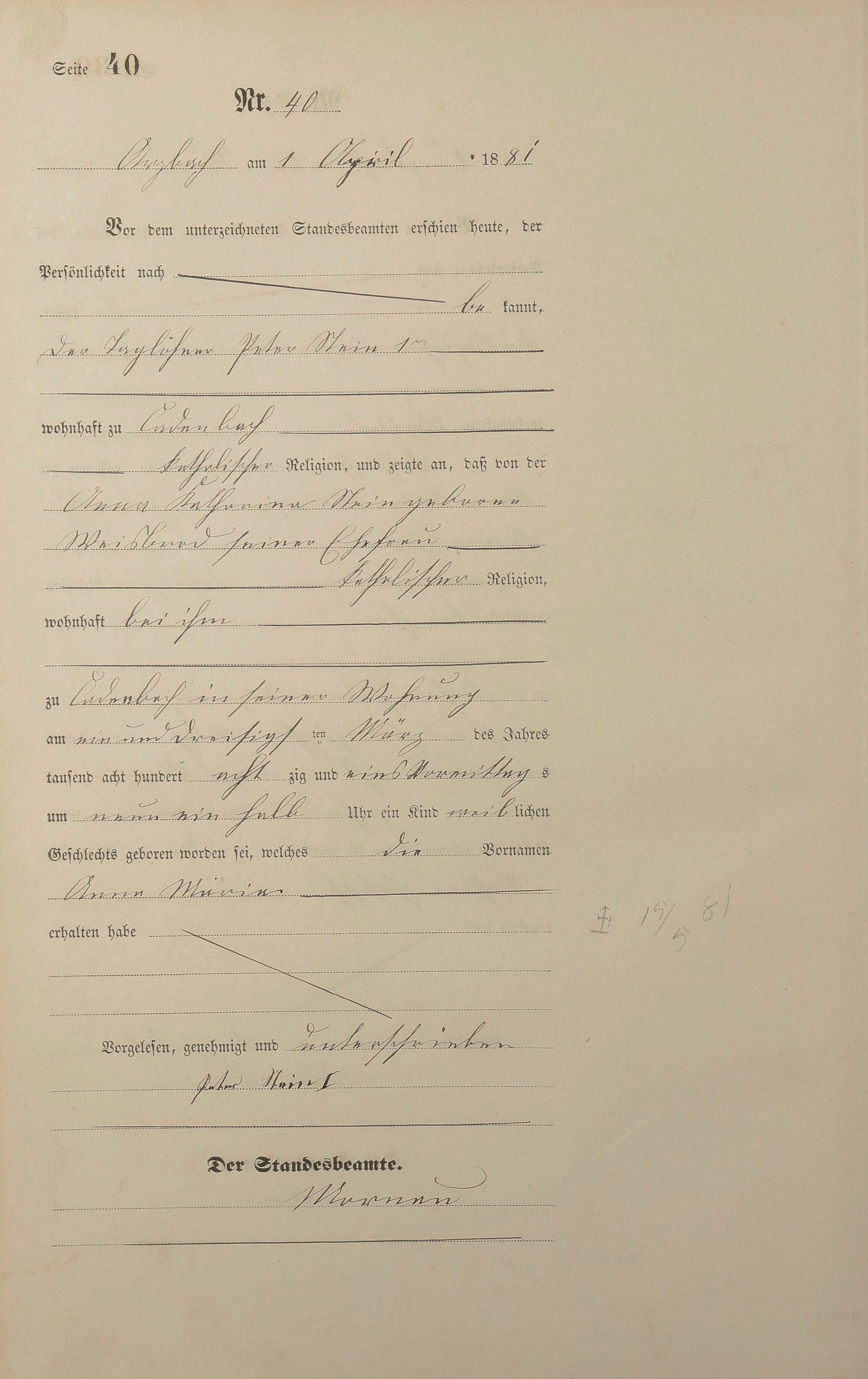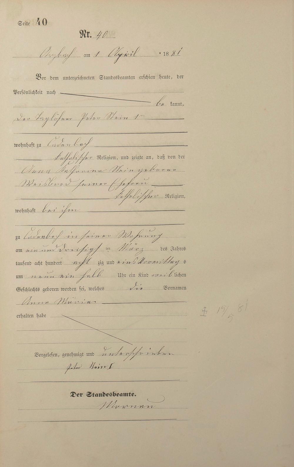 Geburtsregister 1881