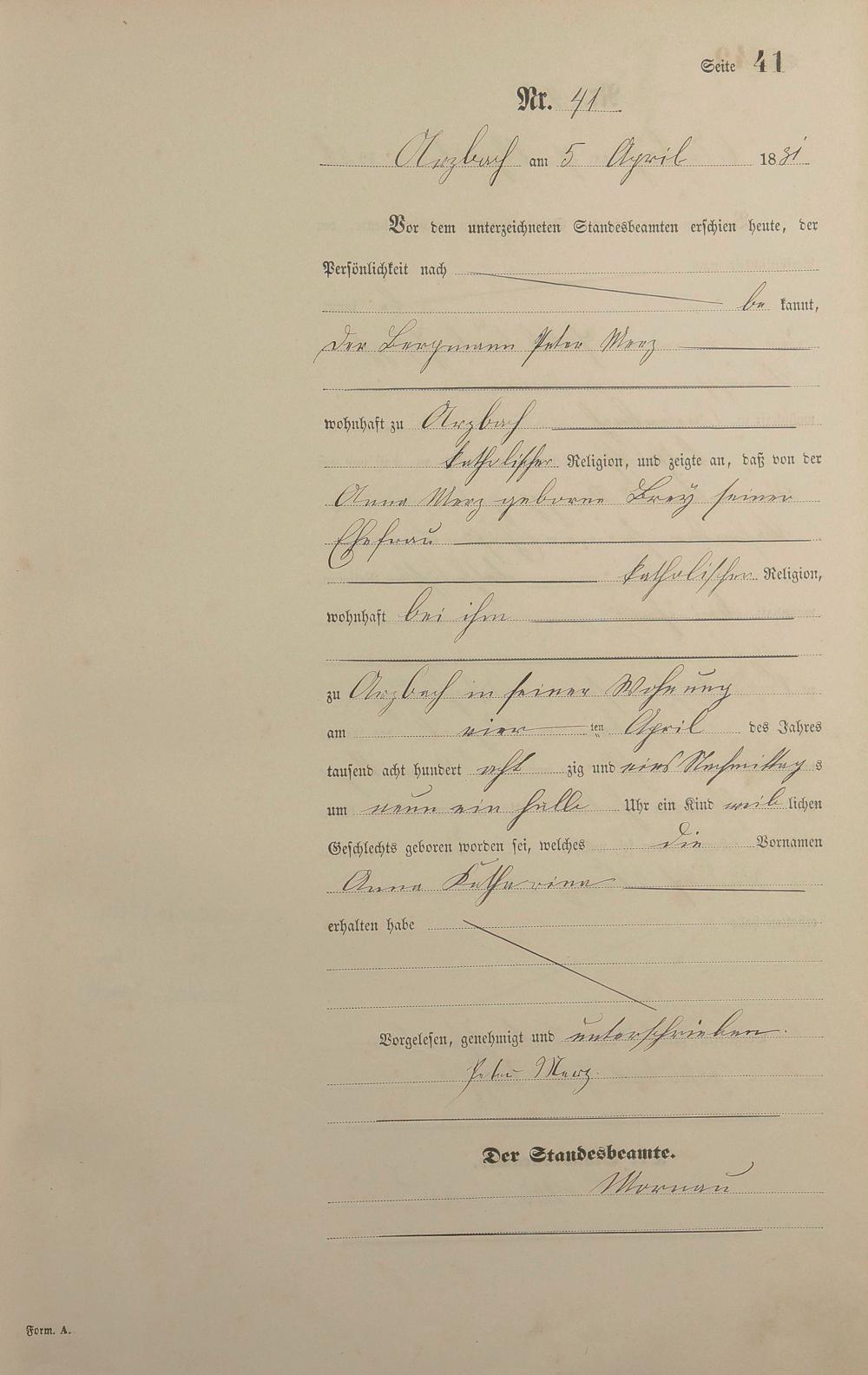 Geburtsregister 1881