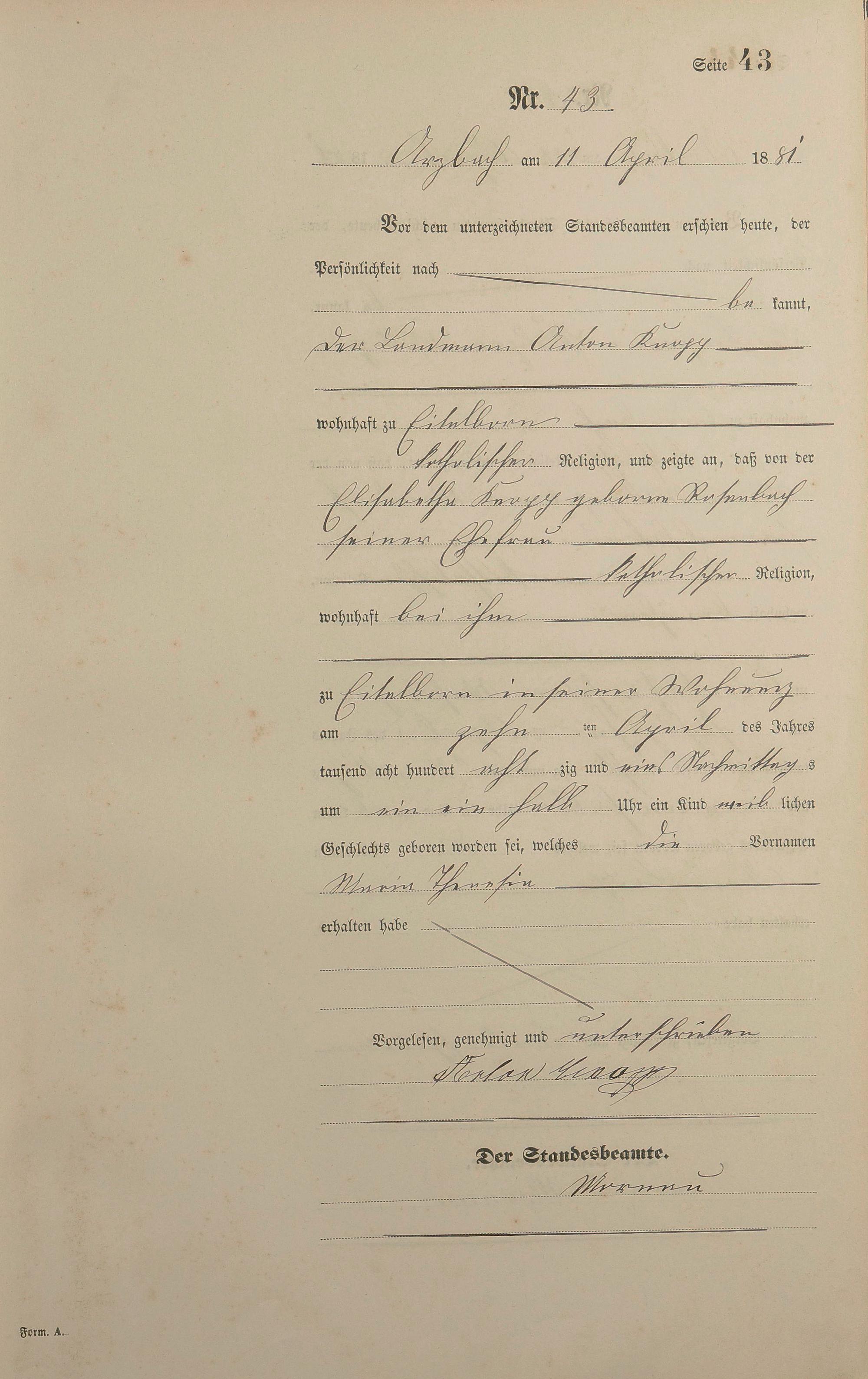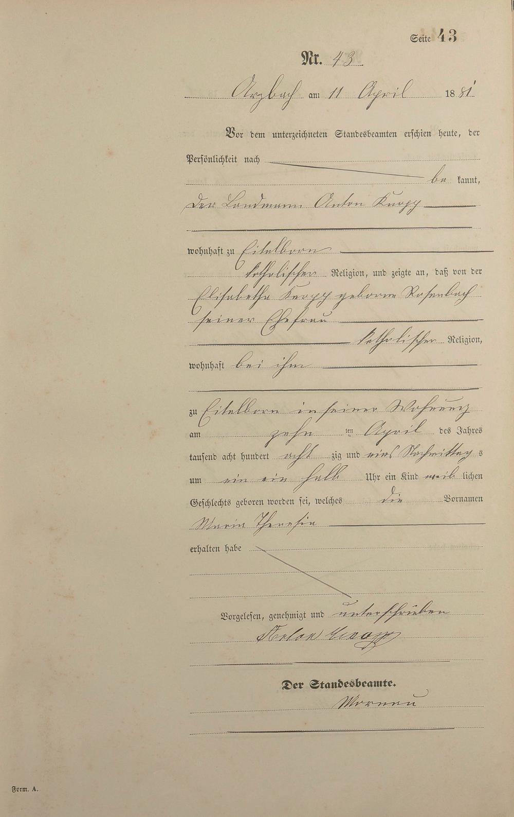 Geburtsregister 1881