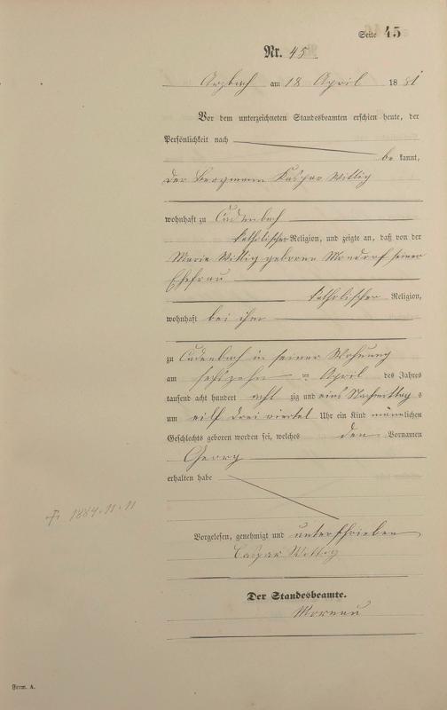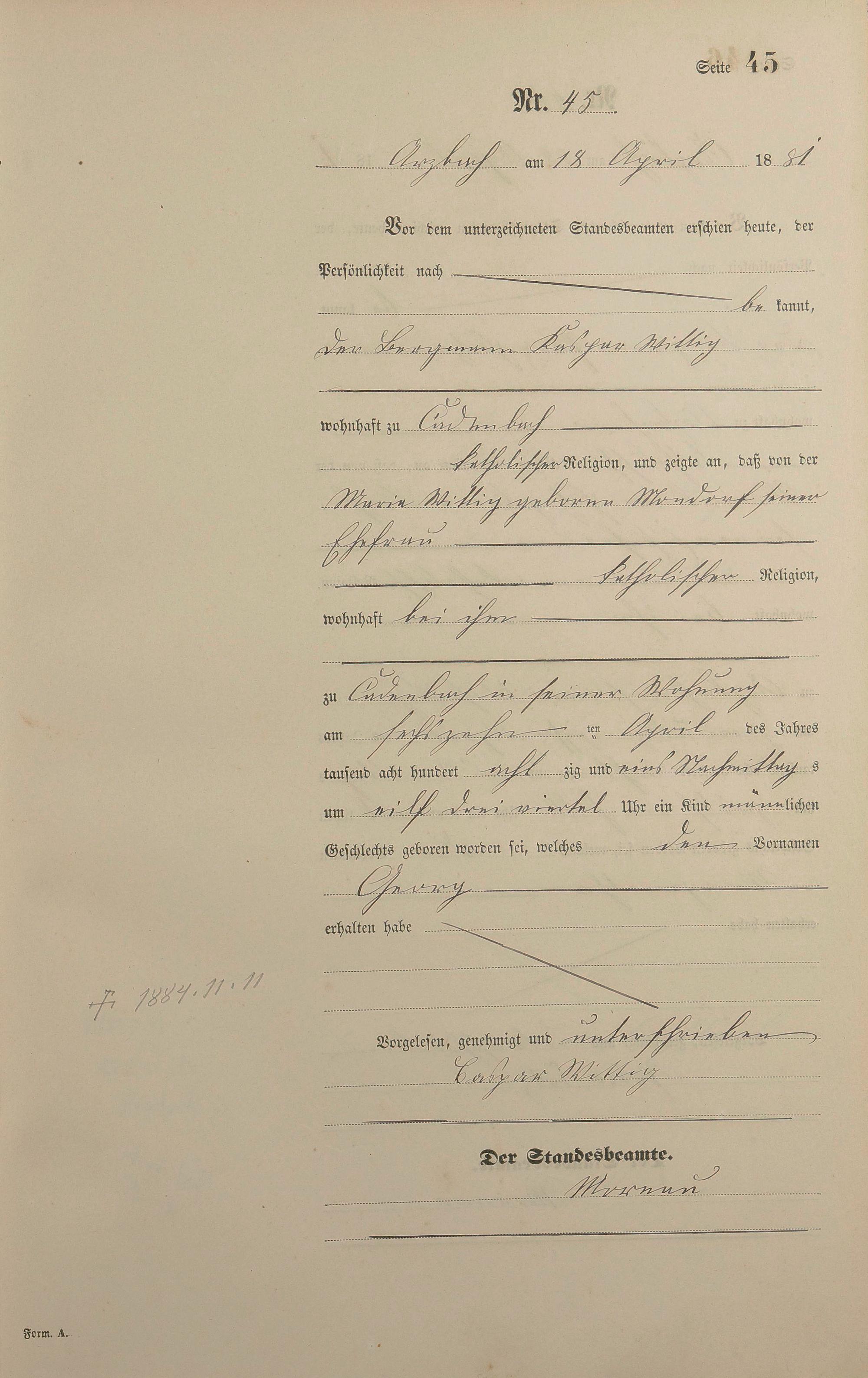 Geburtsregister 1881