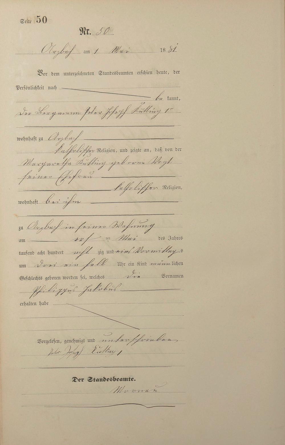 Geburtsregister 1881