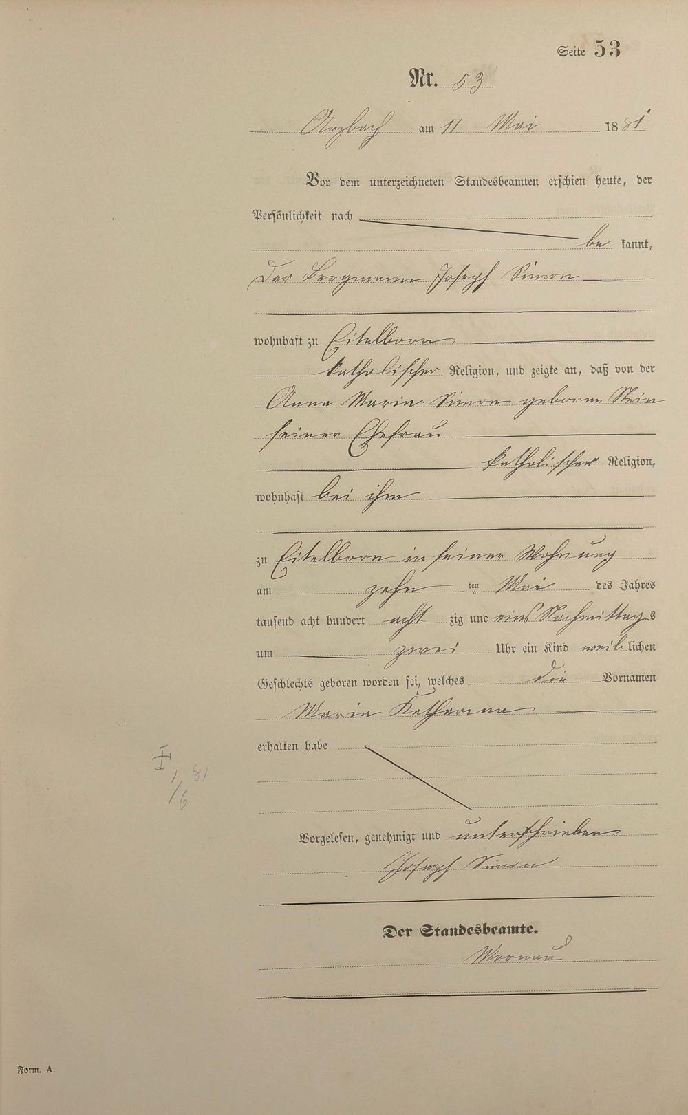 Geburtsregister 1881