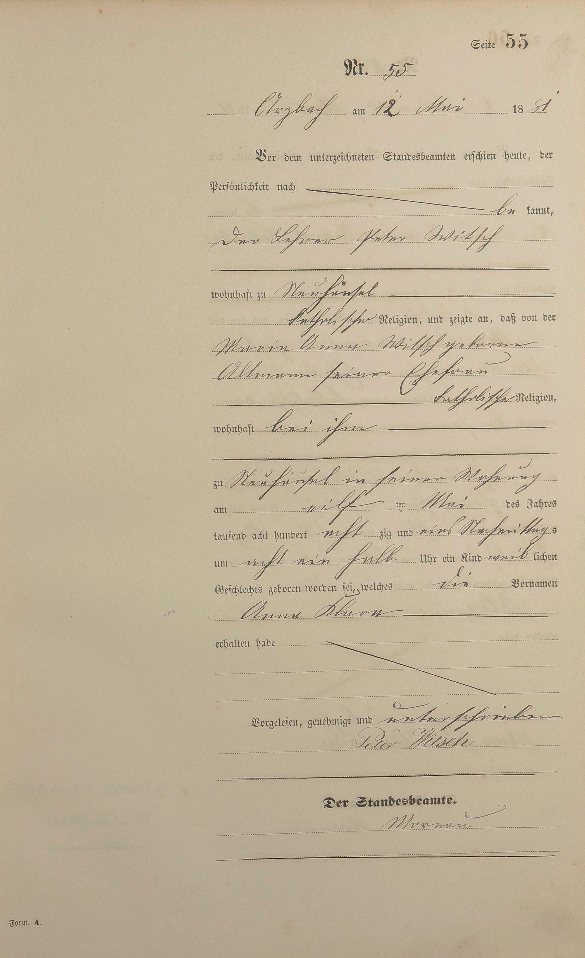 Geburtsregister 1881