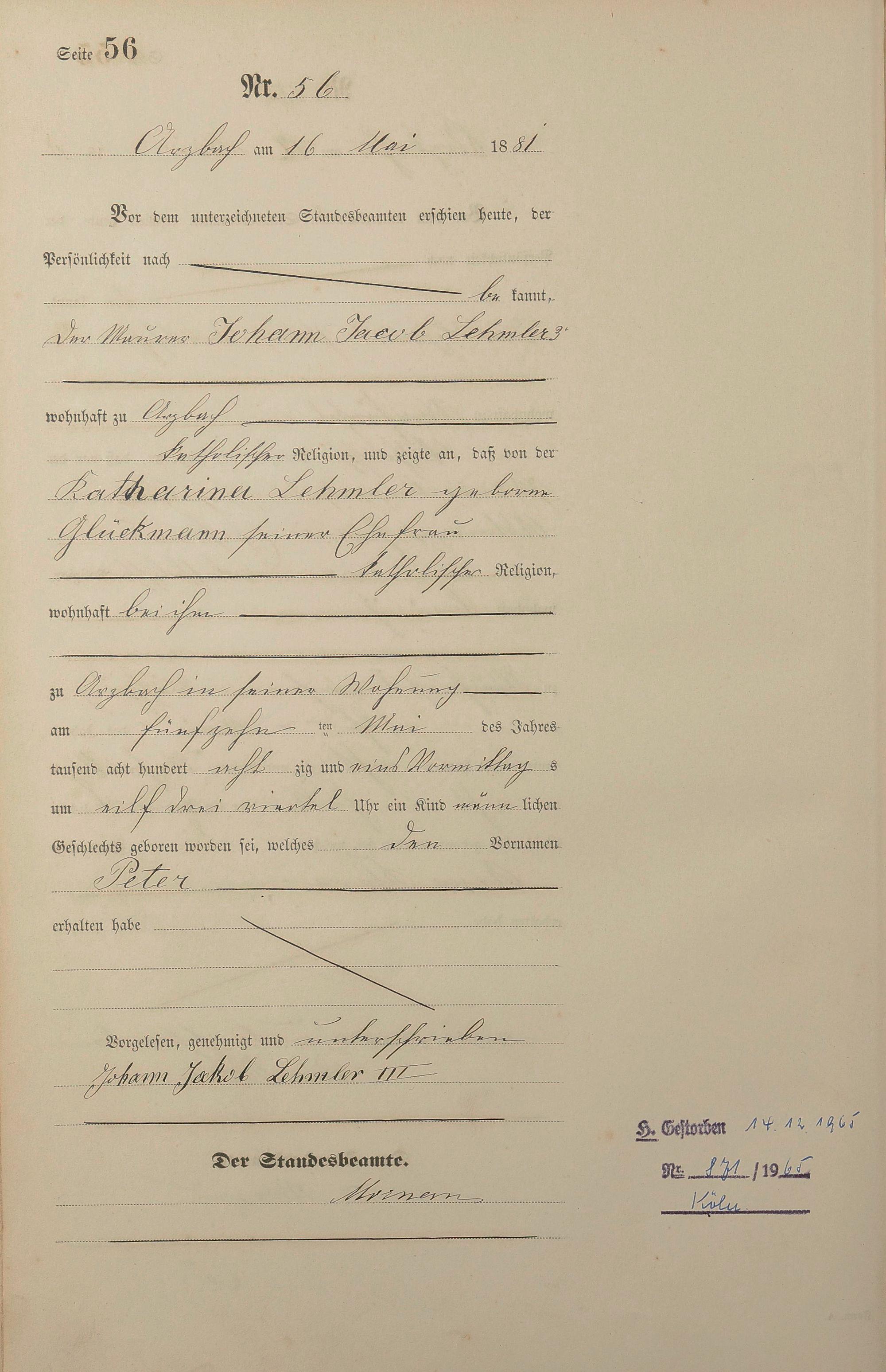 Geburtsregister 1881