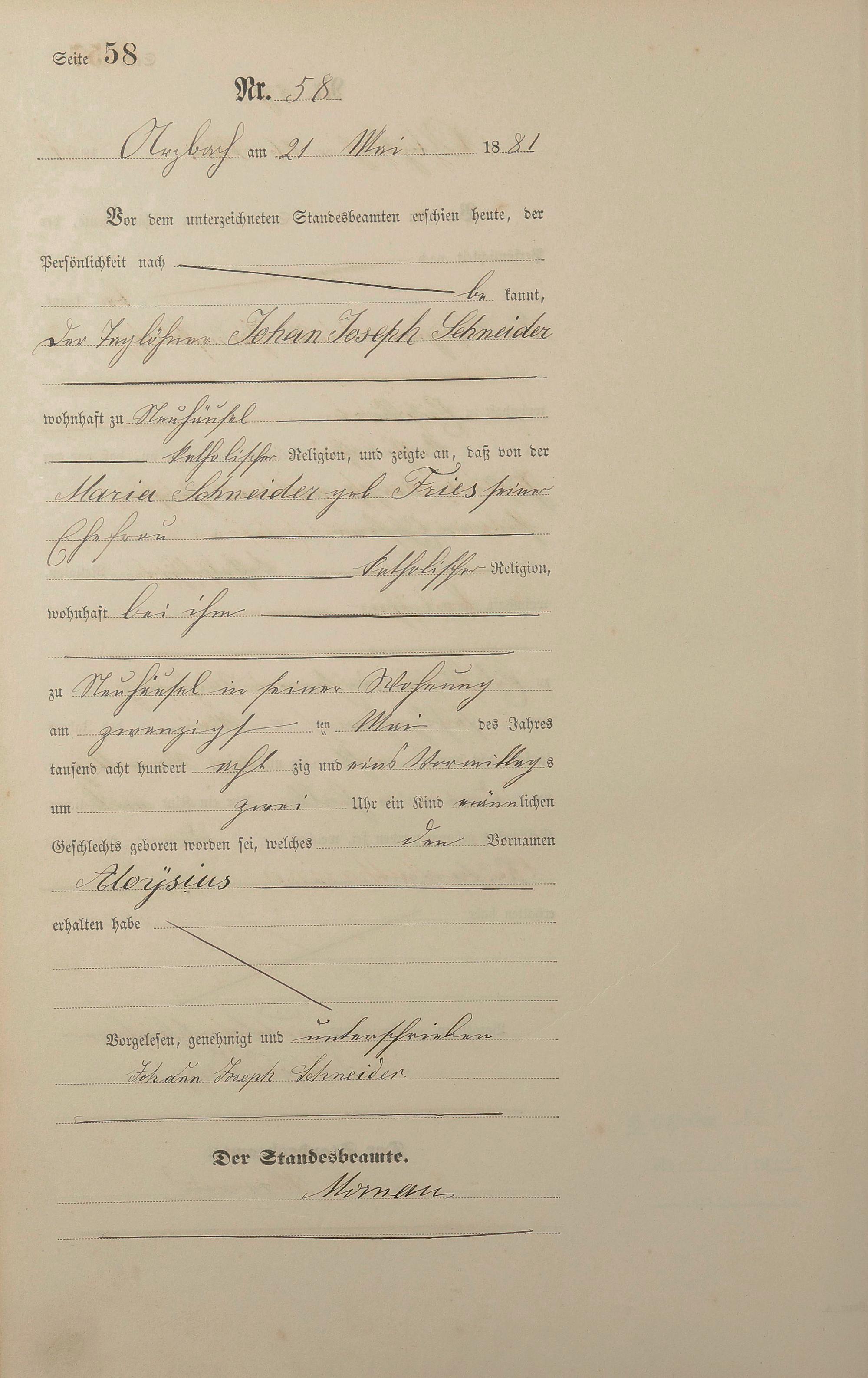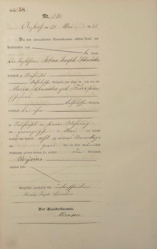 Geburtsregister 1881