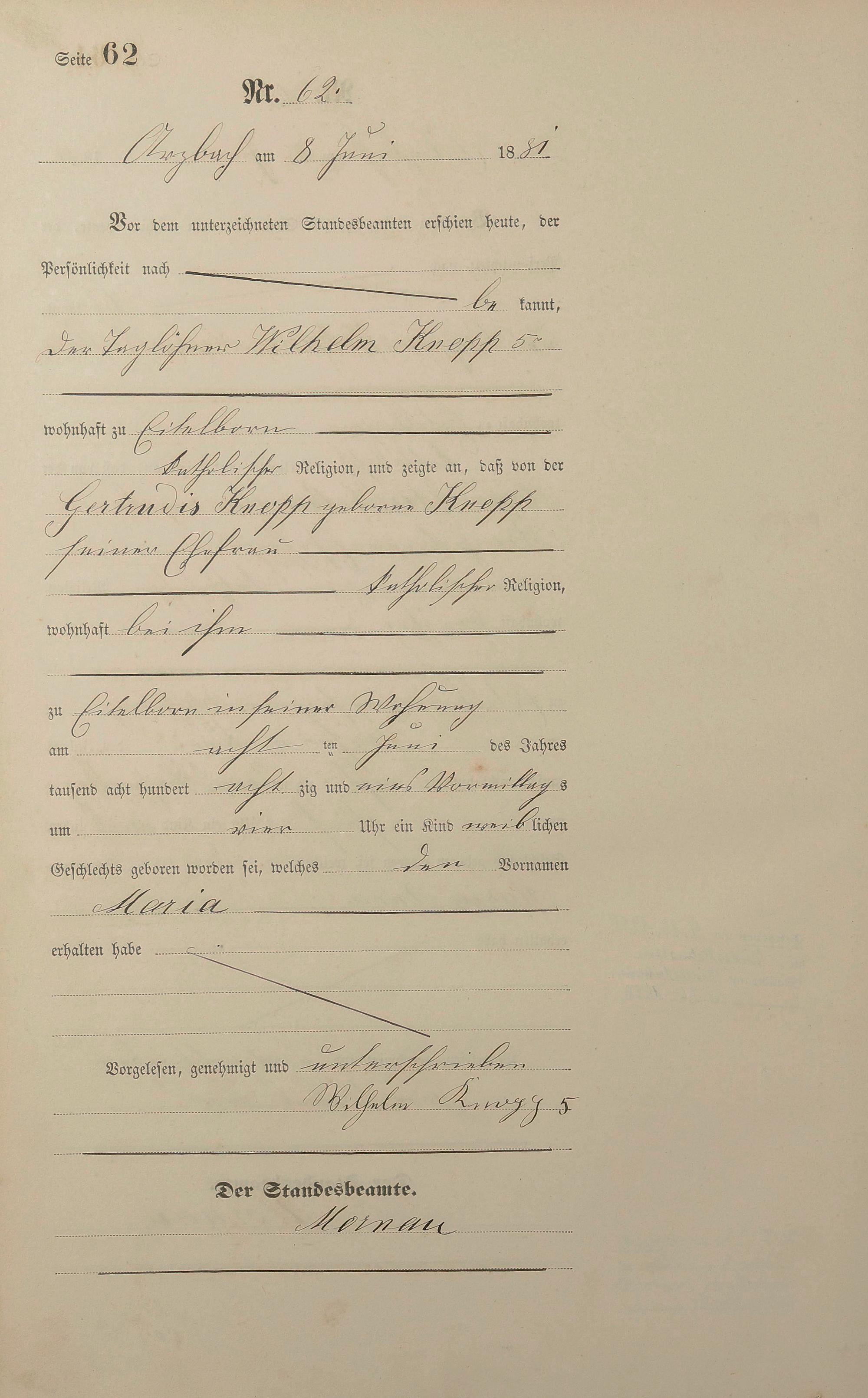 Geburtsregister 1881