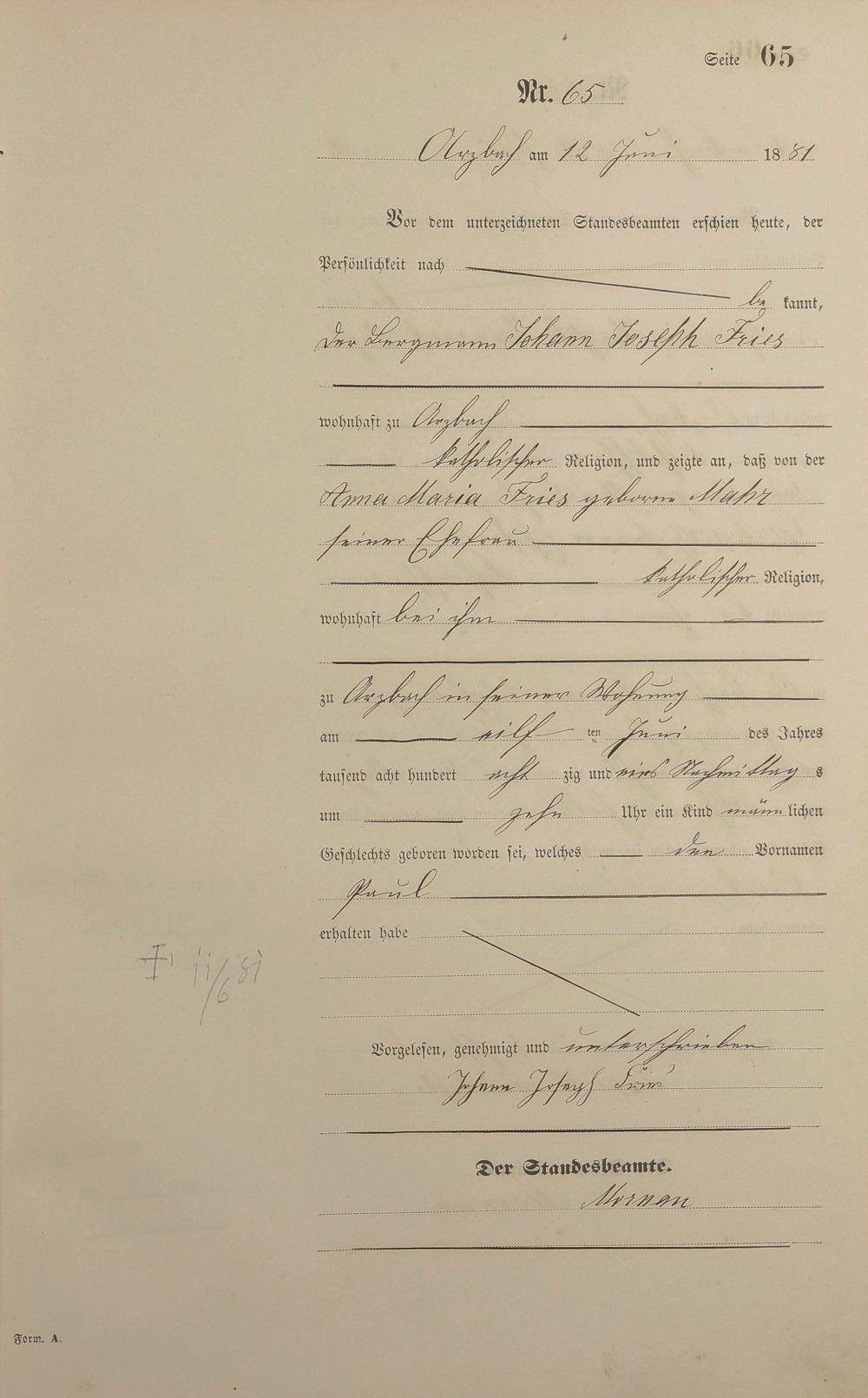 Geburtsregister 1881