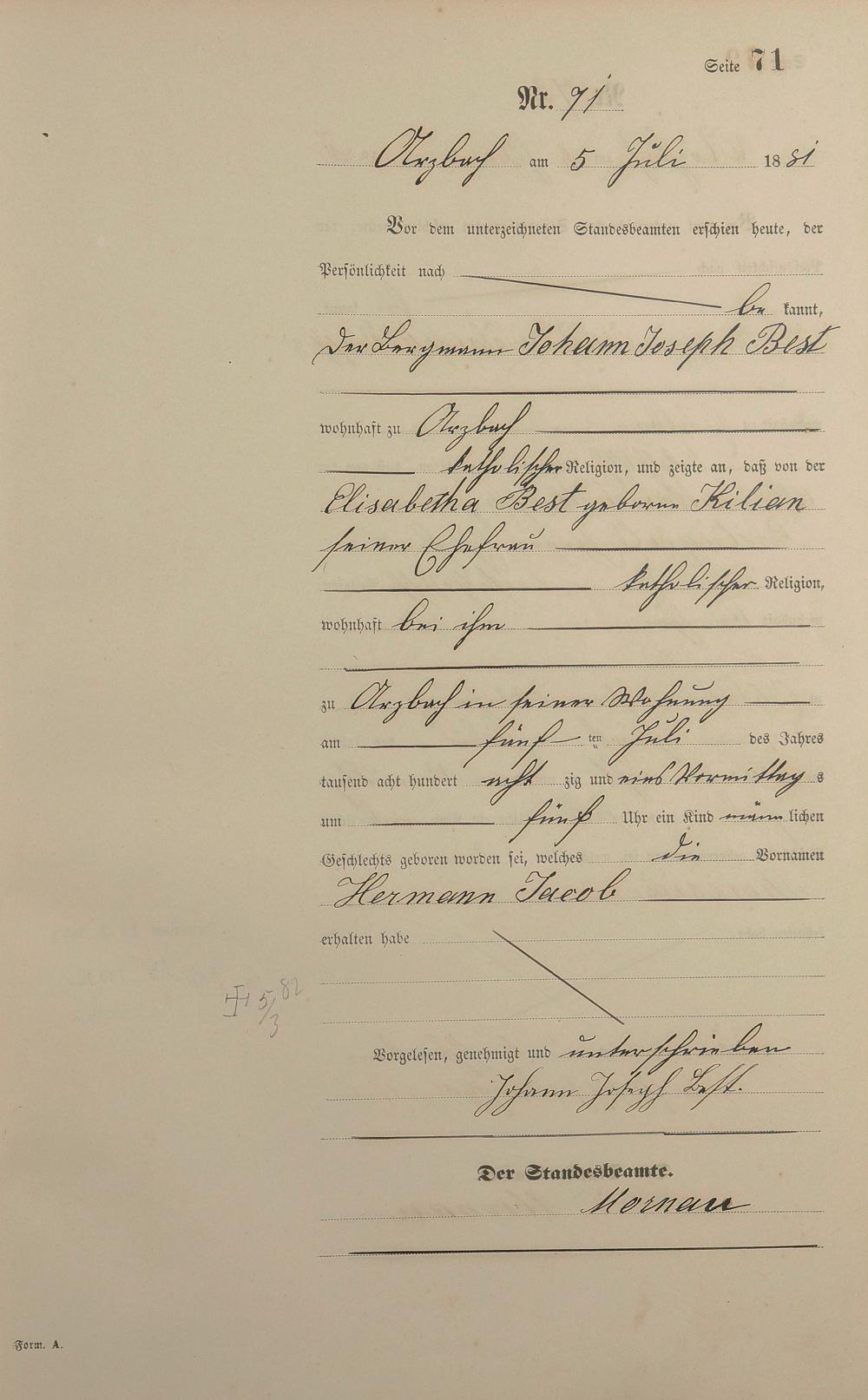 Geburtsregister 1881